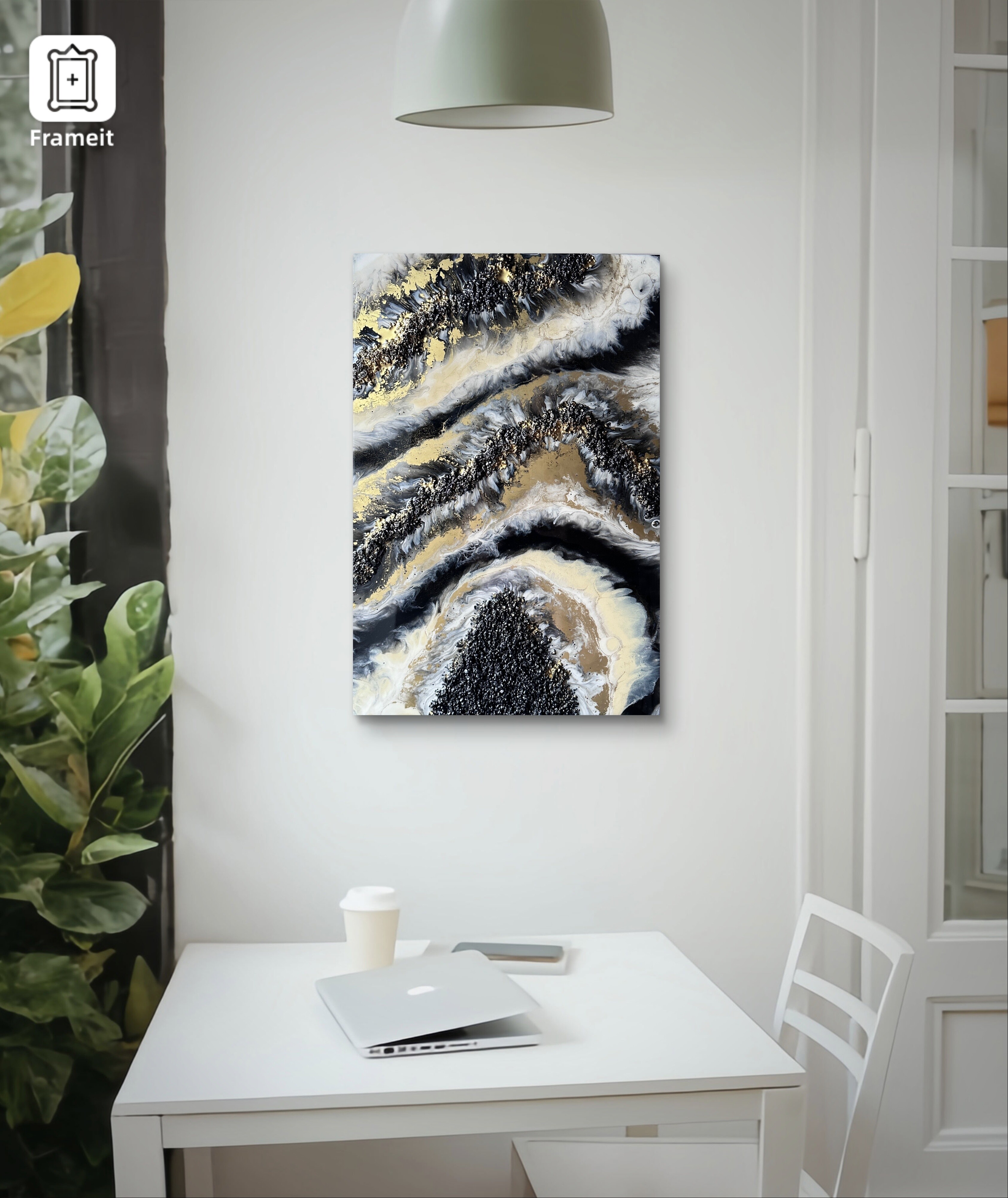 Obraz w stylu geode z czarnymi kamieniami w kolorze czarnym,