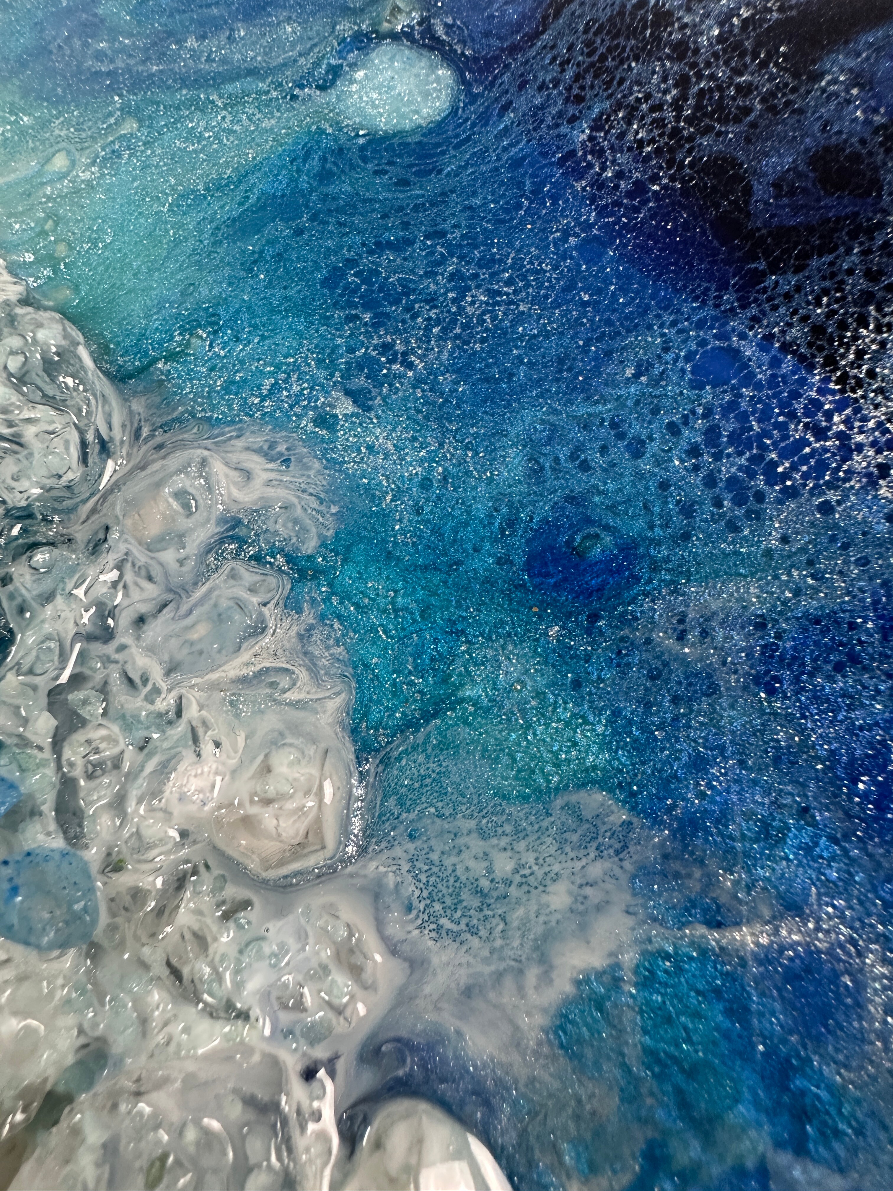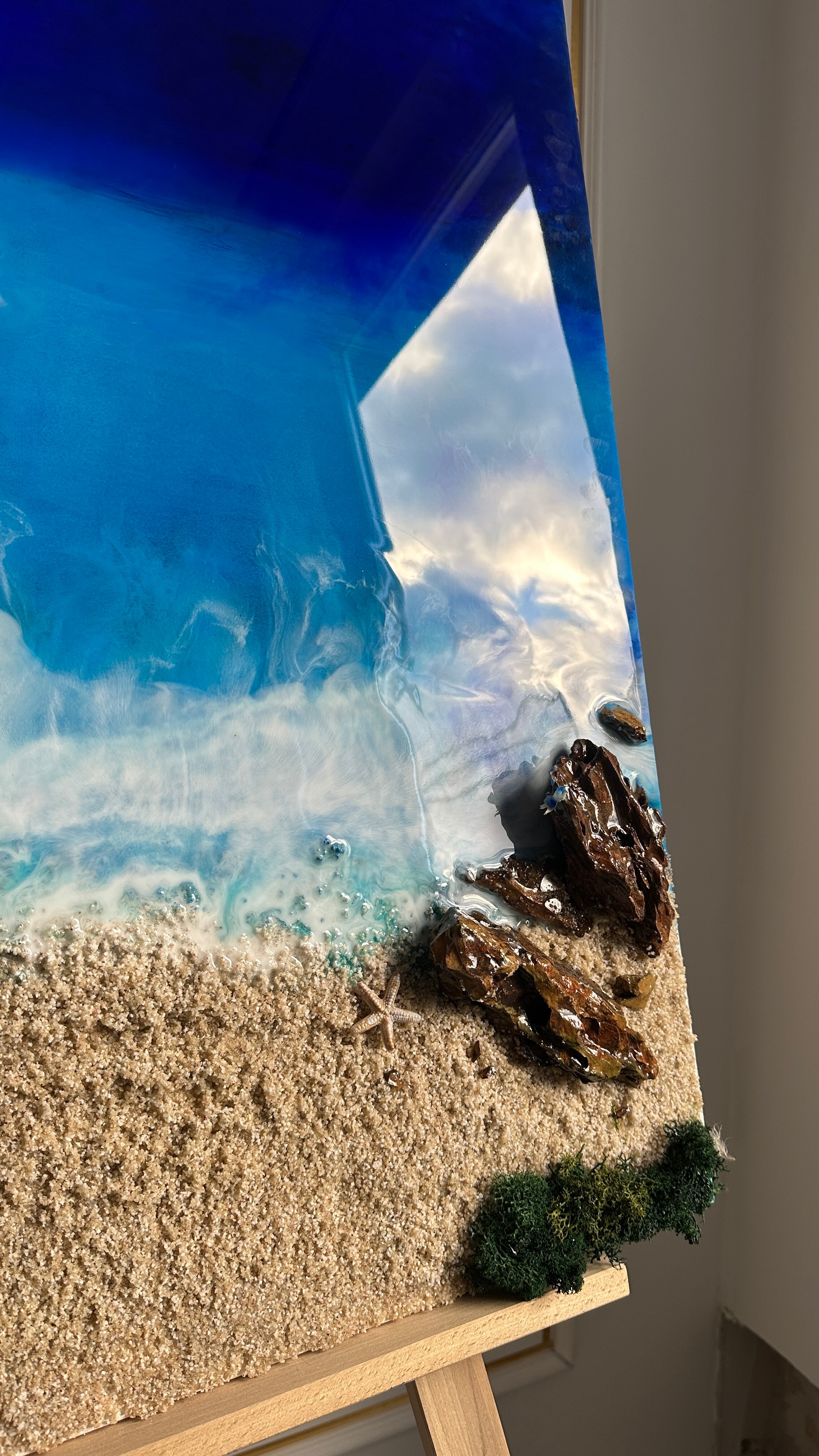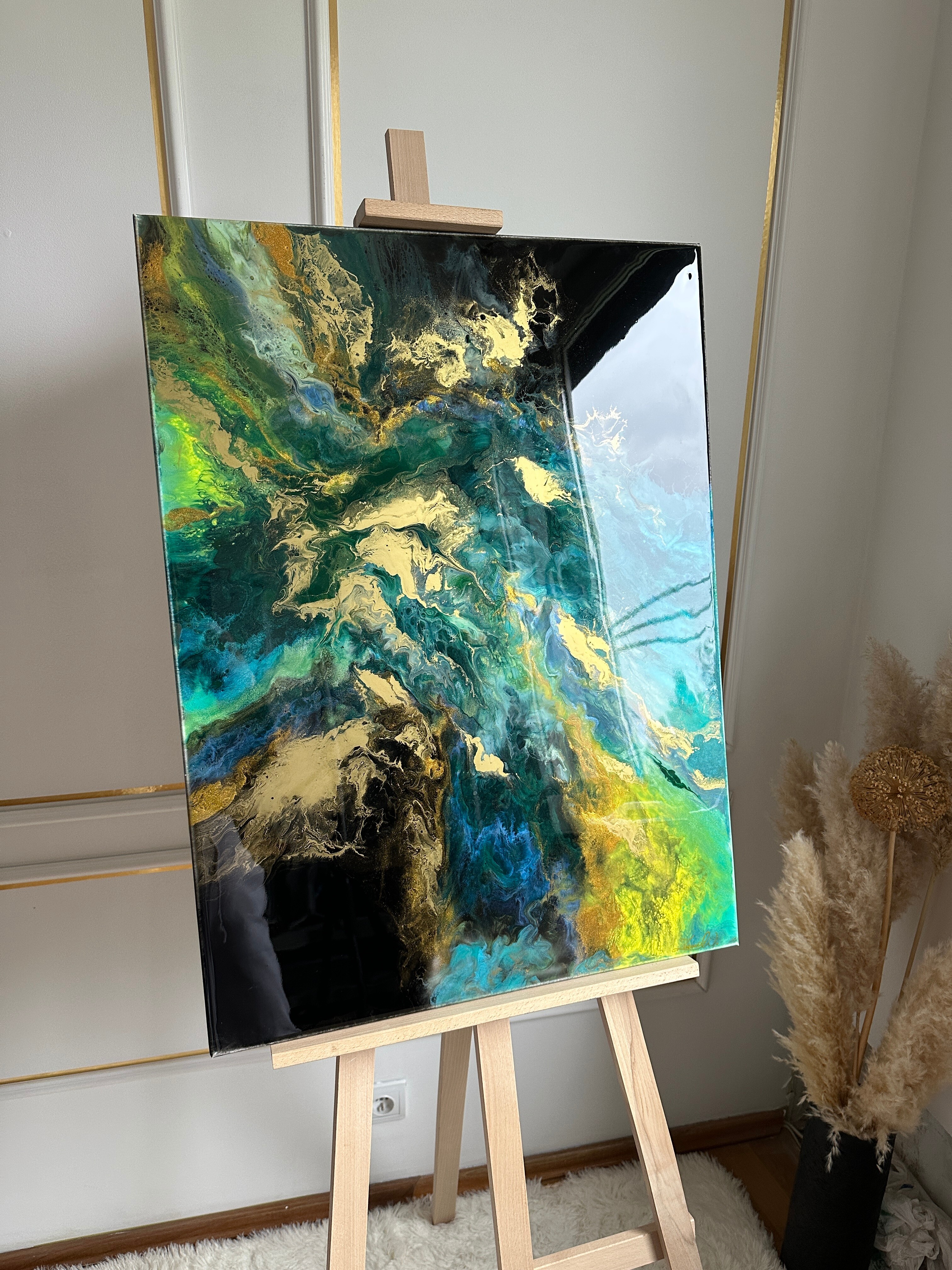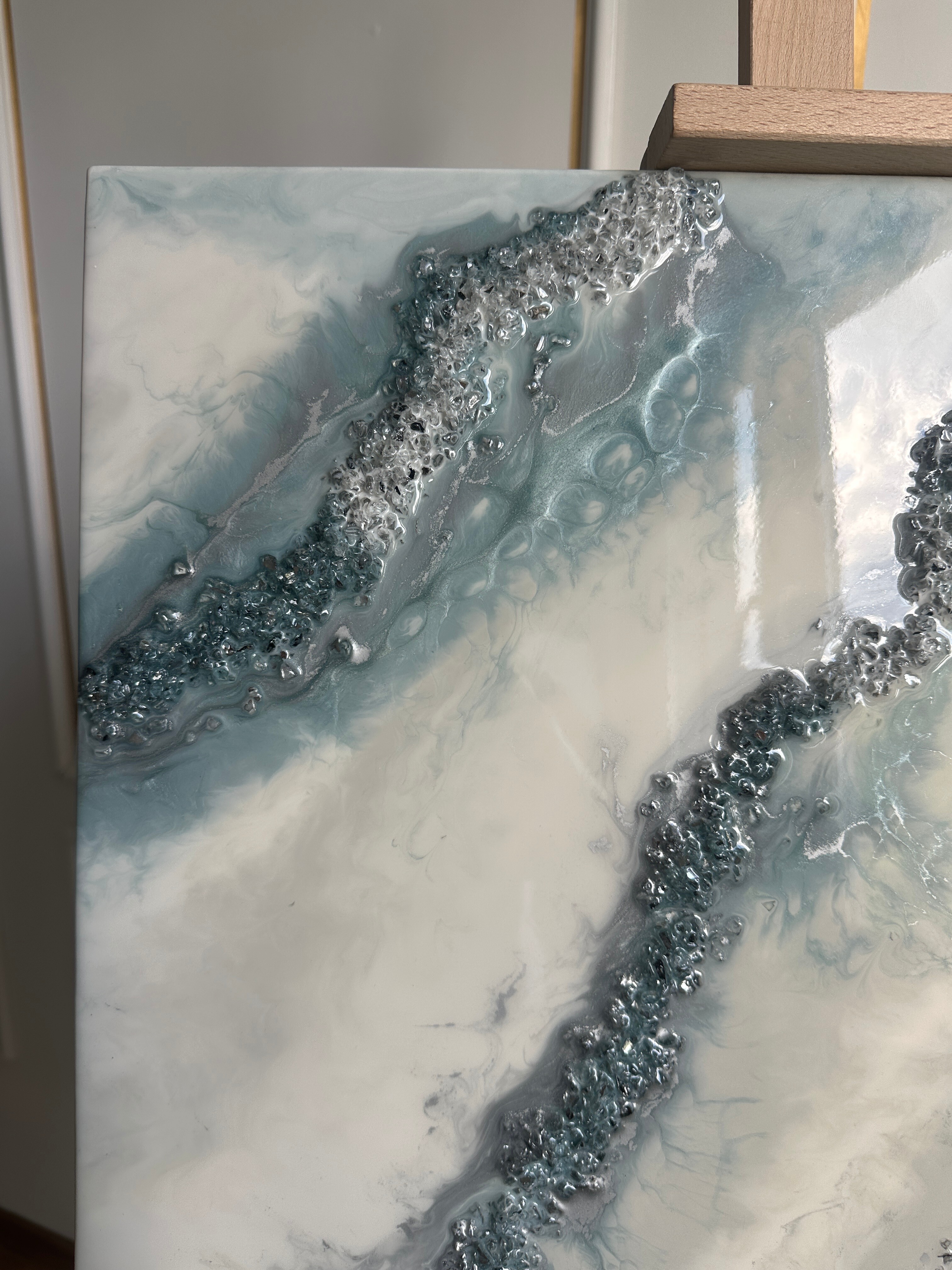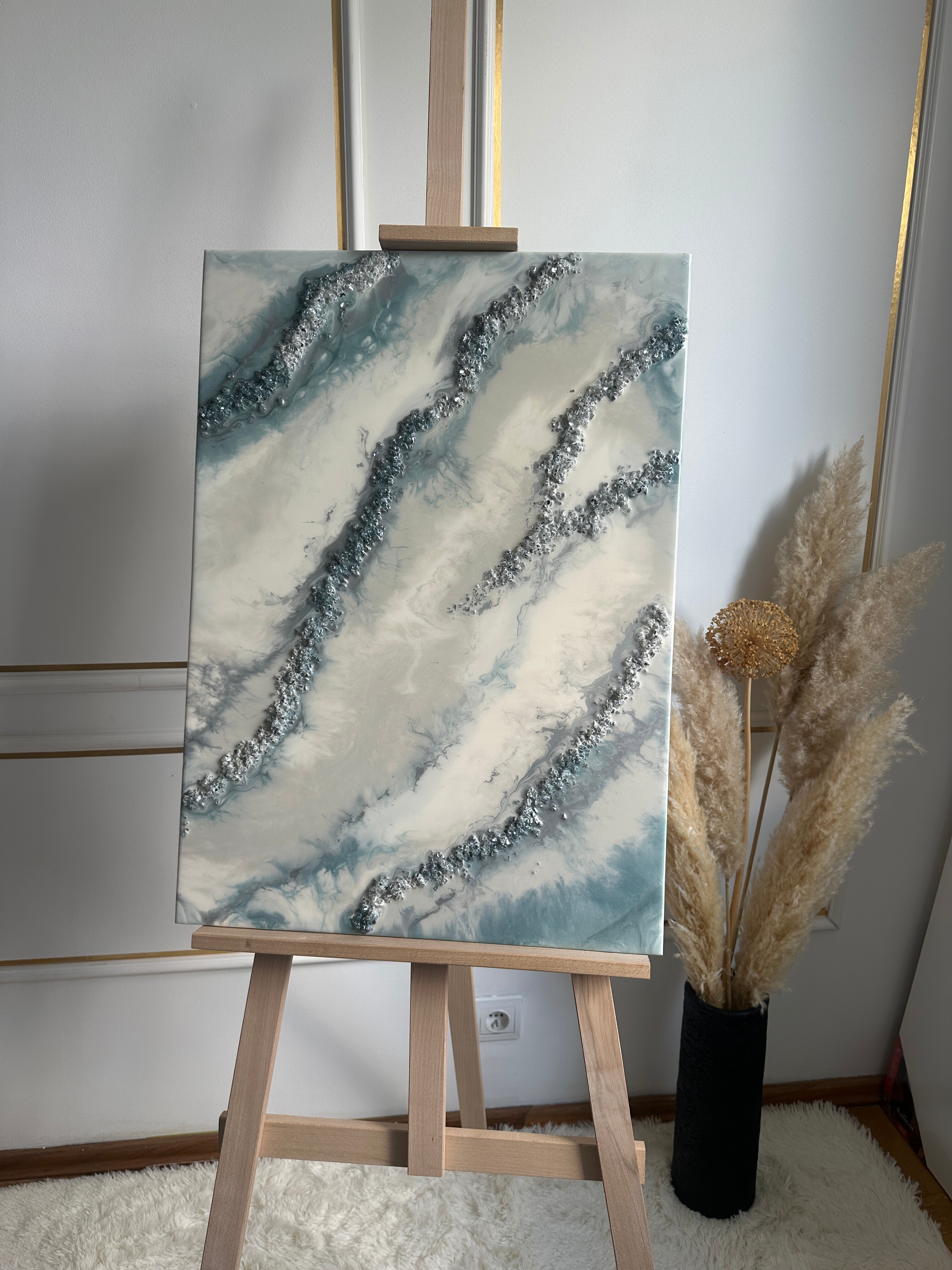 Proces, jakim jest tworzenie tych dzieł, to połączenie sztuki i precyzyjnej technologii. Używamy wyłącznie najlepsze materiały, aby zagwarantować spektakularny efekt i trwałość. Każdy obraz powstaje poprzez nakładanie na siebie wielu cienkich warstw krystalicznej żywicy epoksydowej. To właśnie ta technika pozwala uzyskać niezwykłą głębię, trójwymiarowość oraz szklisty połysk, niemożliwy do osiągnięcia w innych technikach.