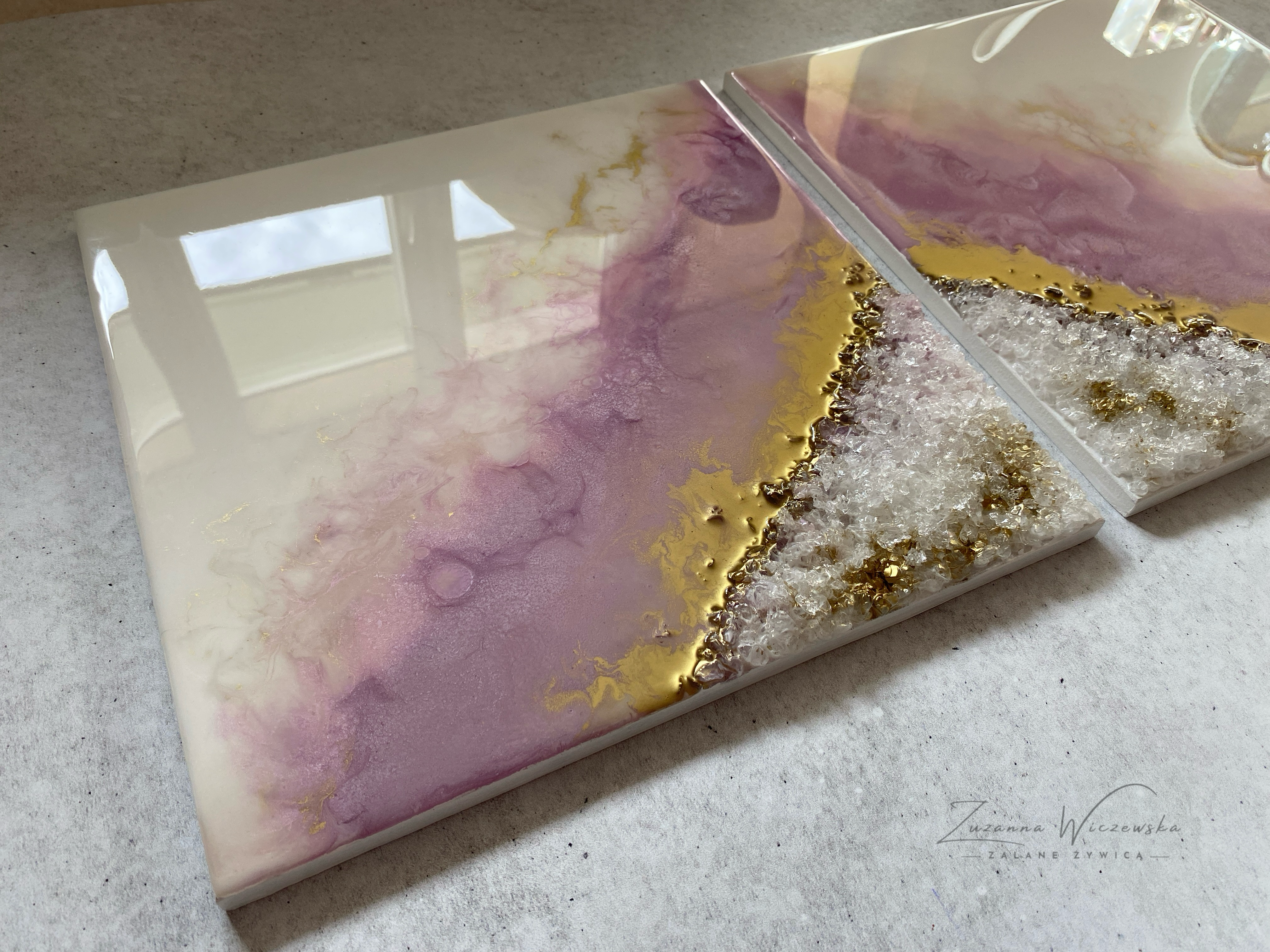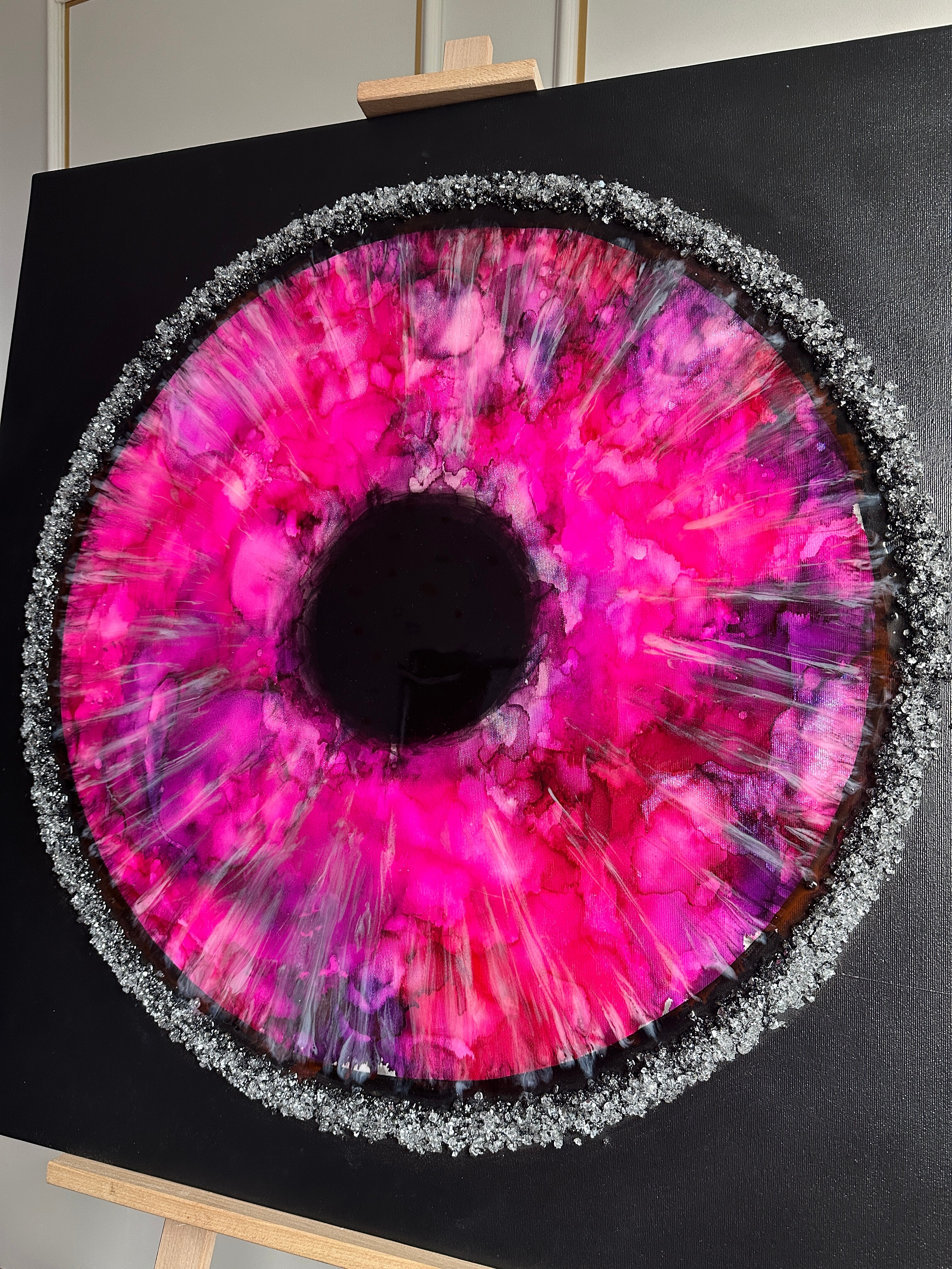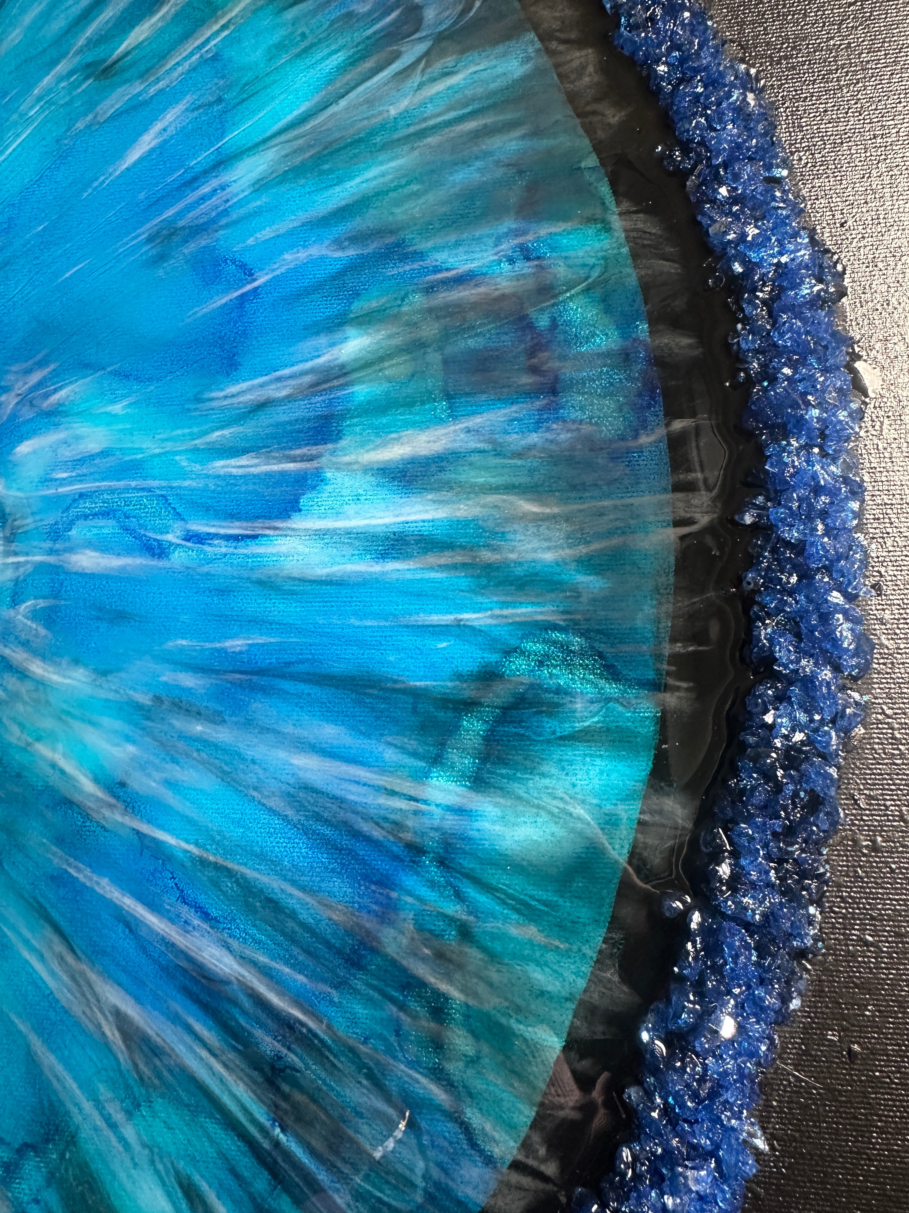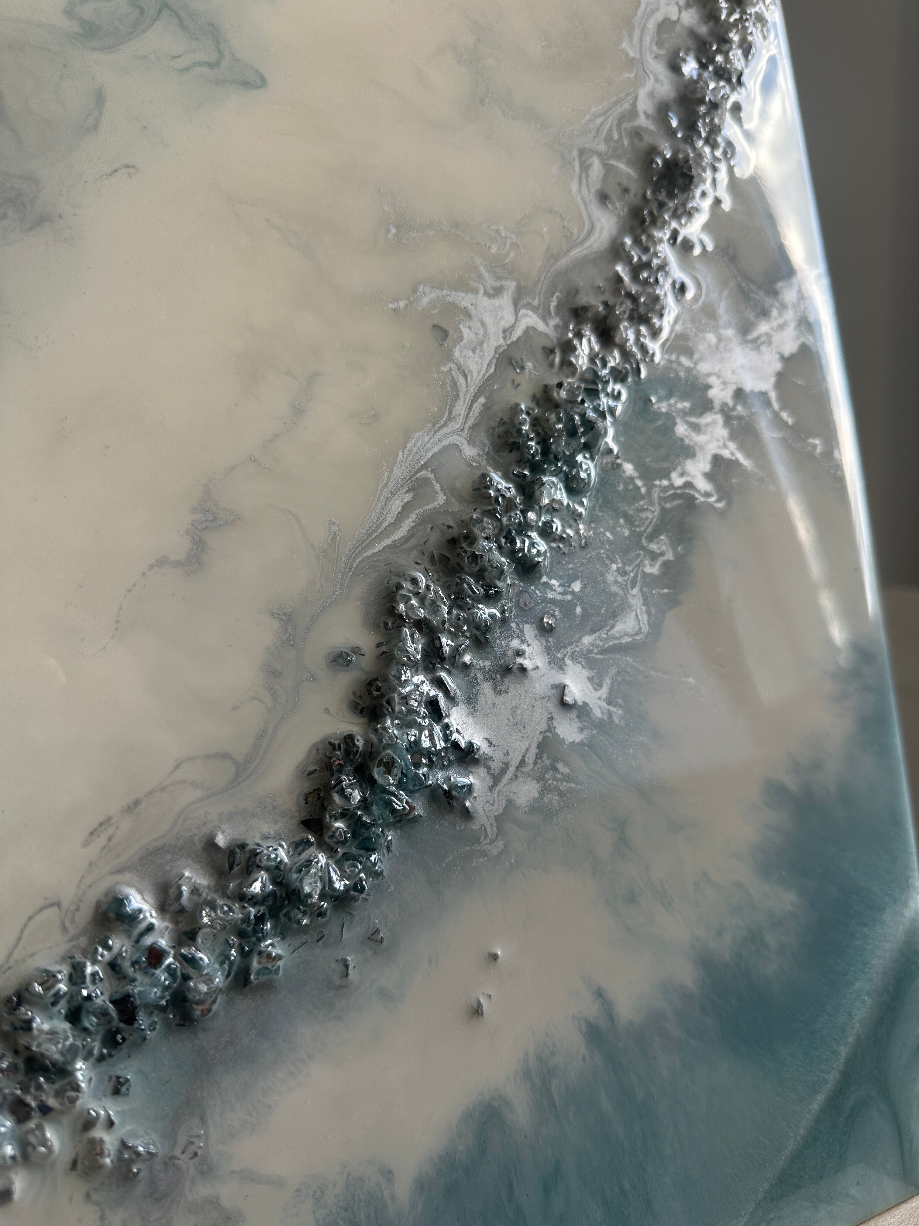 Proces, jakim jest tworzenie tych dzieł, to połączenie sztuki i precyzyjnej technologii. Używamy wyłącznie najlepsze materiały, aby zagwarantować spektakularny efekt i trwałość. Każdy obraz powstaje poprzez nakładanie na siebie wielu cienkich warstw krystalicznej żywicy epoksydowej. To właśnie ta technika pozwala uzyskać niezwykłą głębię, trójwymiarowość oraz szklisty połysk, niemożliwy do osiągnięcia w innych technikach.