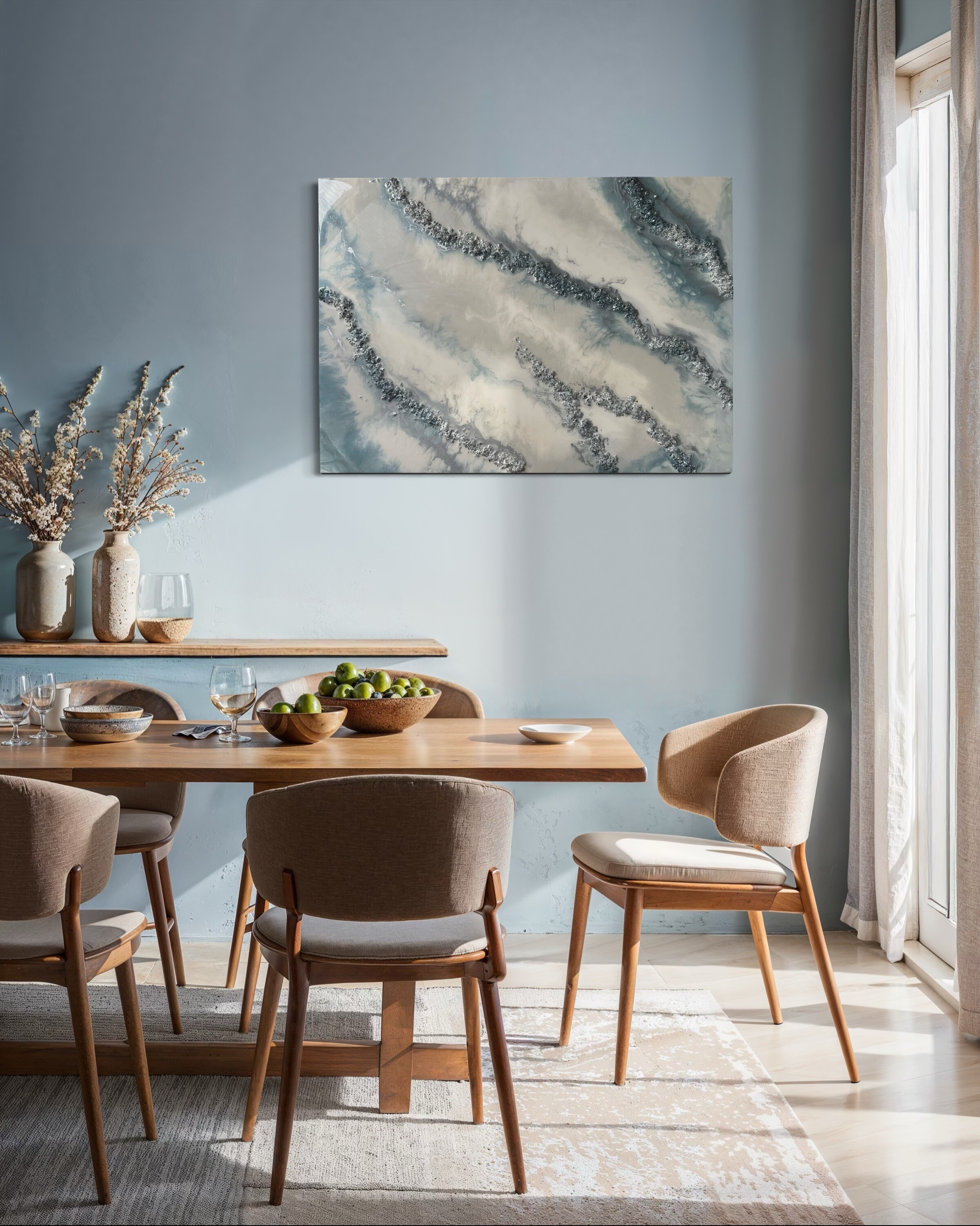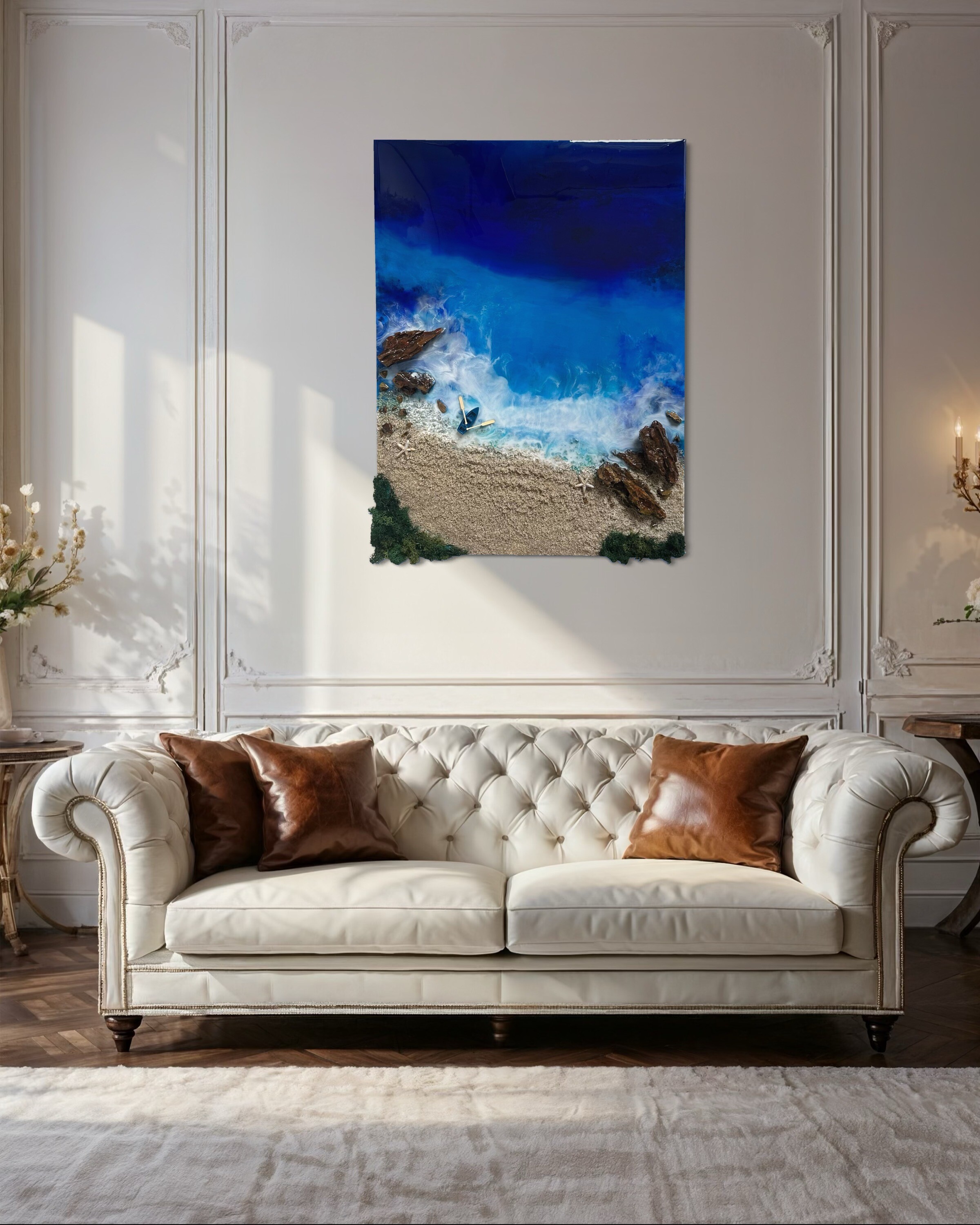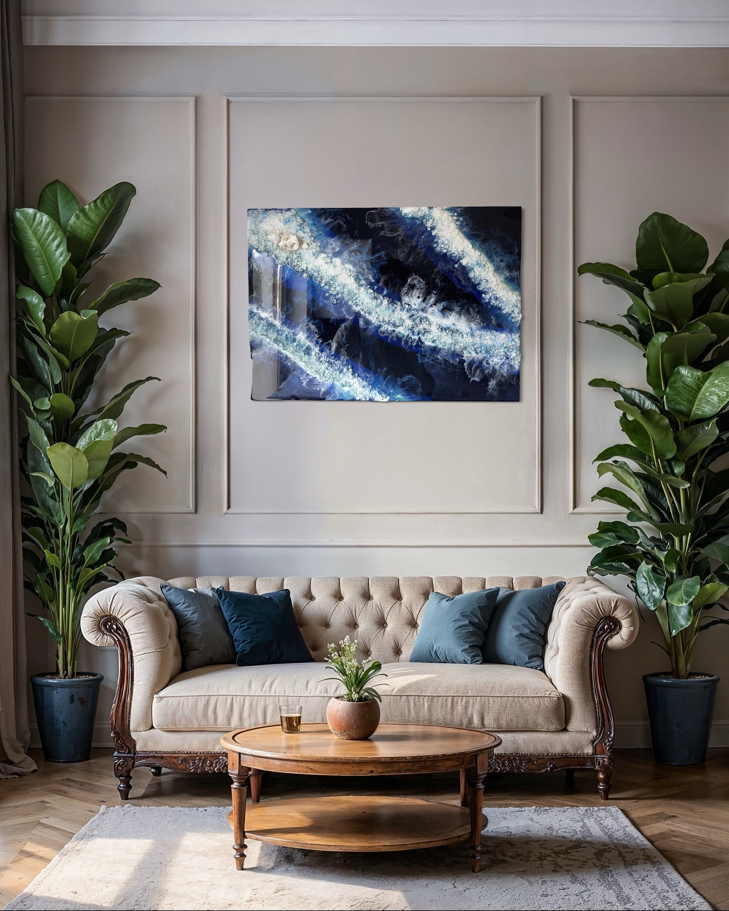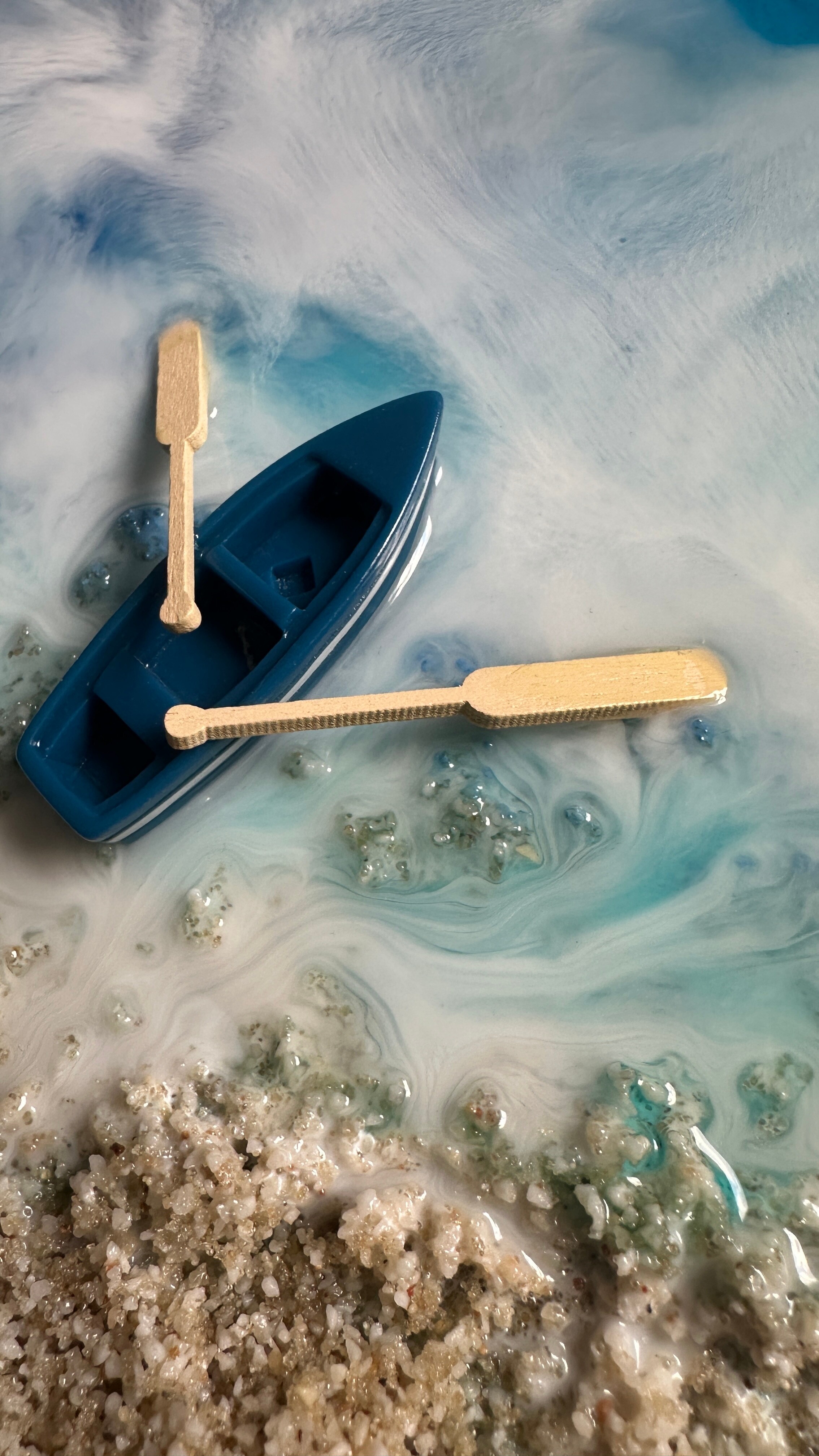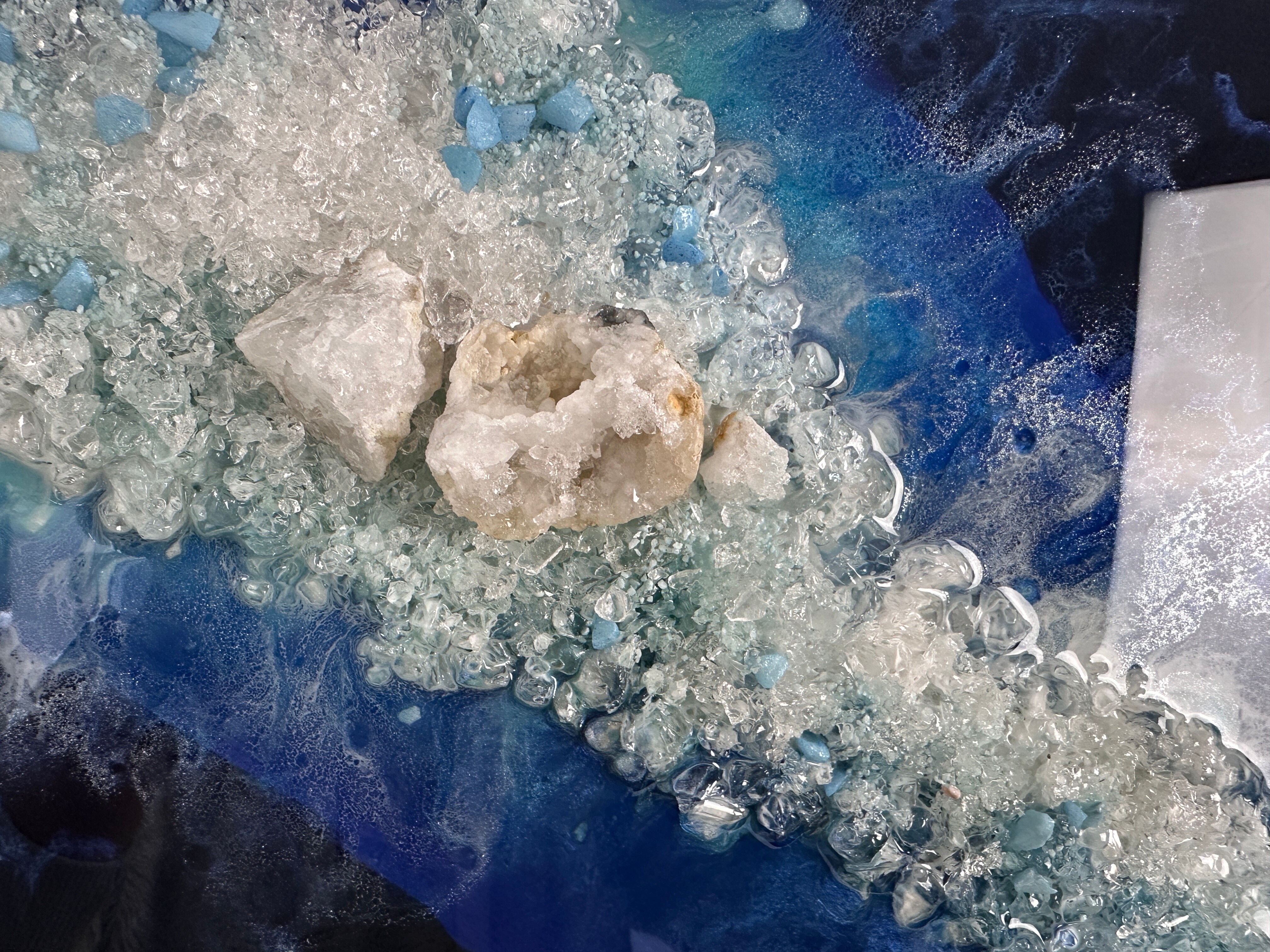Proces, jakim jest tworzenie tych dzieł, to połączenie sztuki i precyzyjnej technologii. Używamy wyłącznie najlepsze materiały, aby zagwarantować spektakularny efekt i trwałość. Każdy obraz powstaje poprzez nakładanie na siebie wielu cienkich warstw krystalicznej żywicy epoksydowej. To właśnie ta technika pozwala uzyskać niezwykłą głębię, trójwymiarowość oraz szklisty połysk, niemożliwy do osiągnięcia w innych technikach.