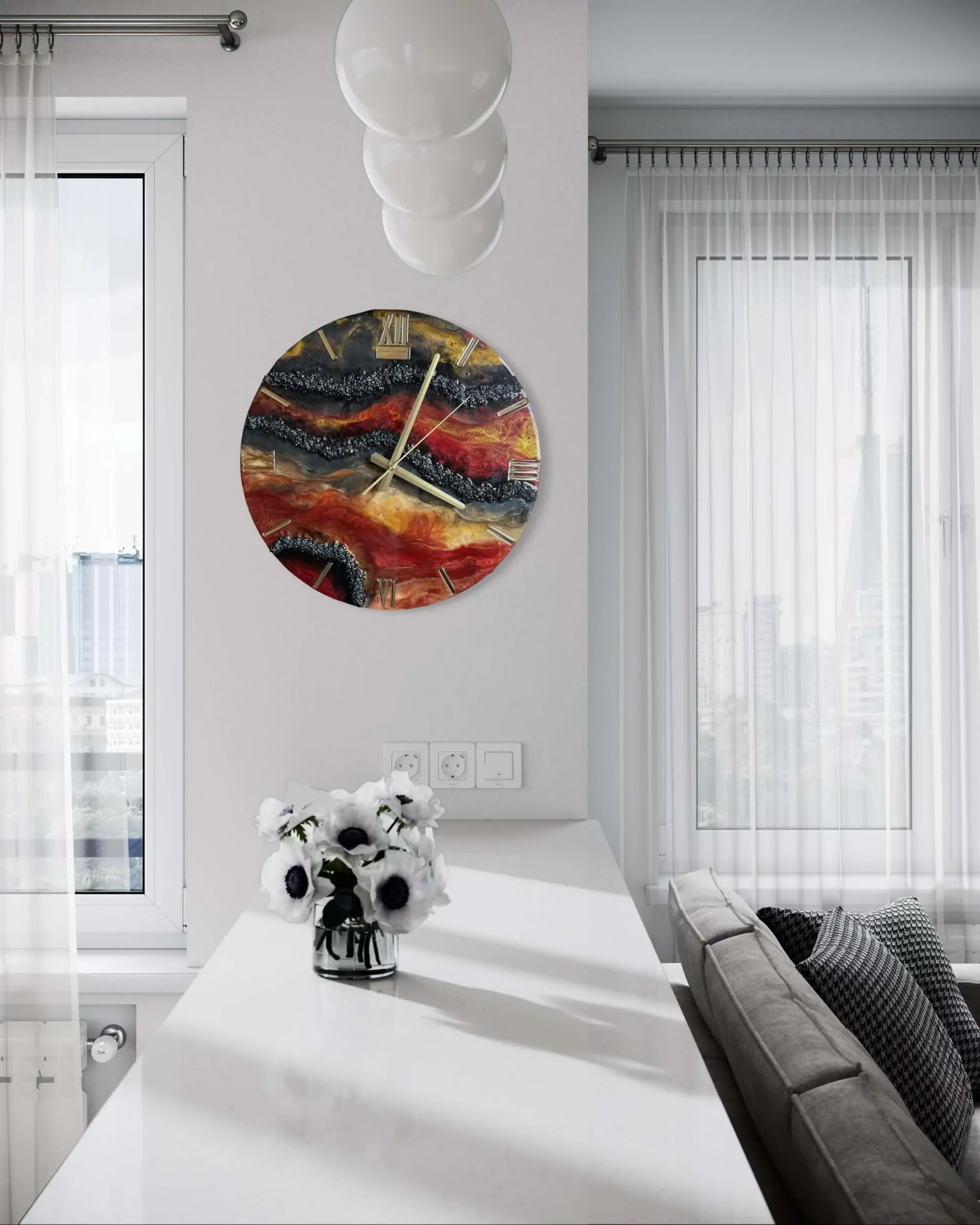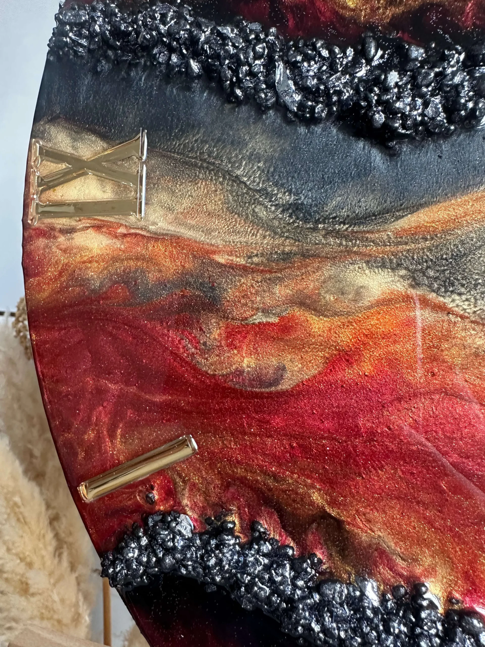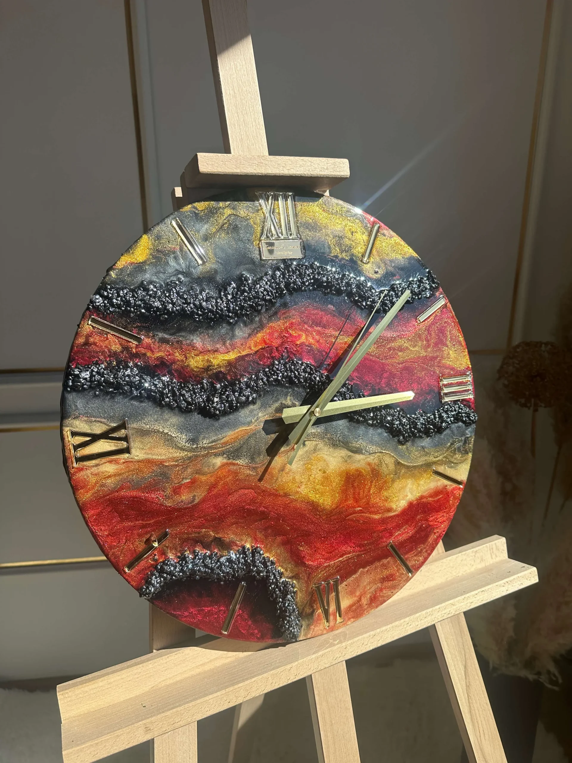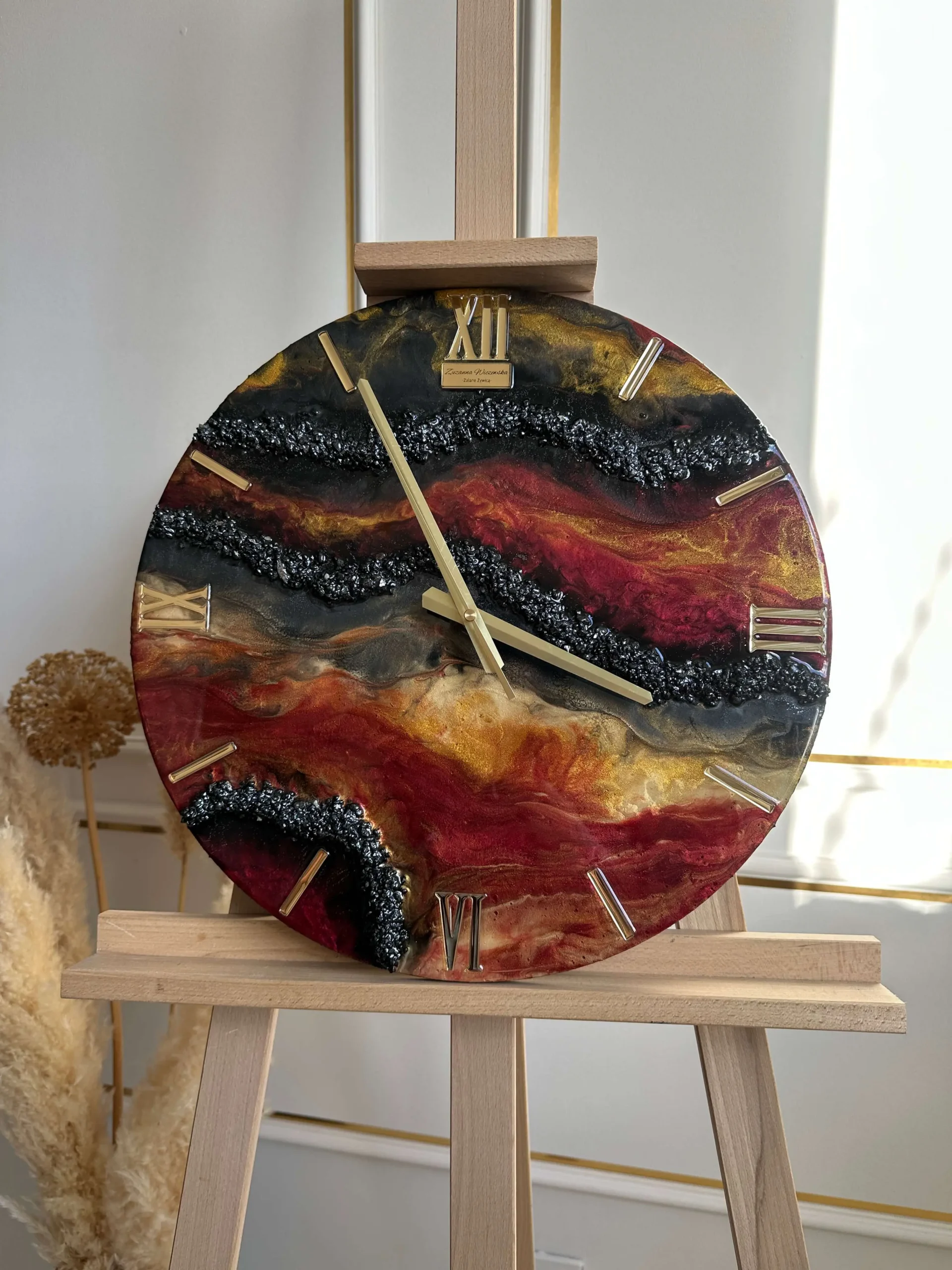 ✨ Wymiary: 40 cm ✨ Zrobiony na mdf, który odstaje od ściany 2cm ✨ Zabezpieczony żywicą odporną na mikro zarysowania, a także żółknięcie ✨ Certyfikat autentyczności ✨ Bezszelestny mechanizmZegar z żywicy epoksydowej z kamieniami