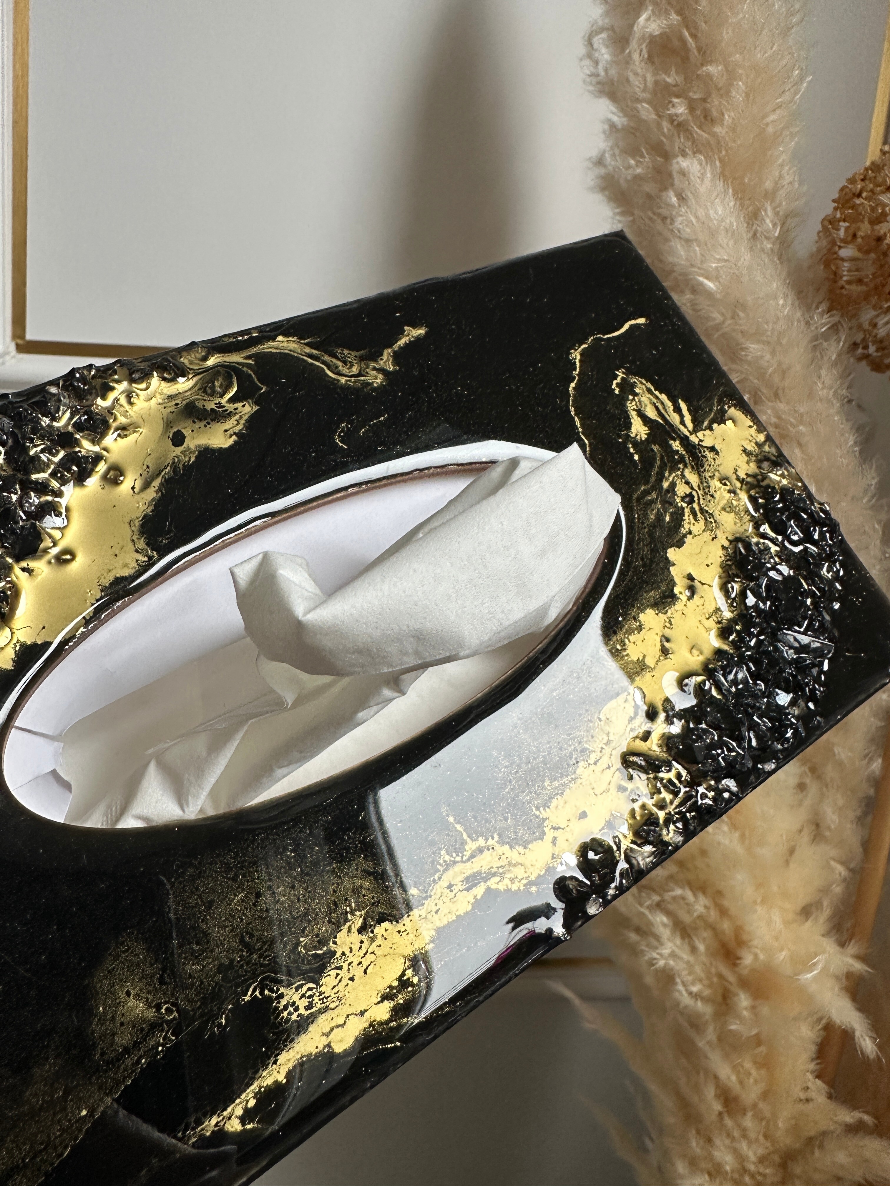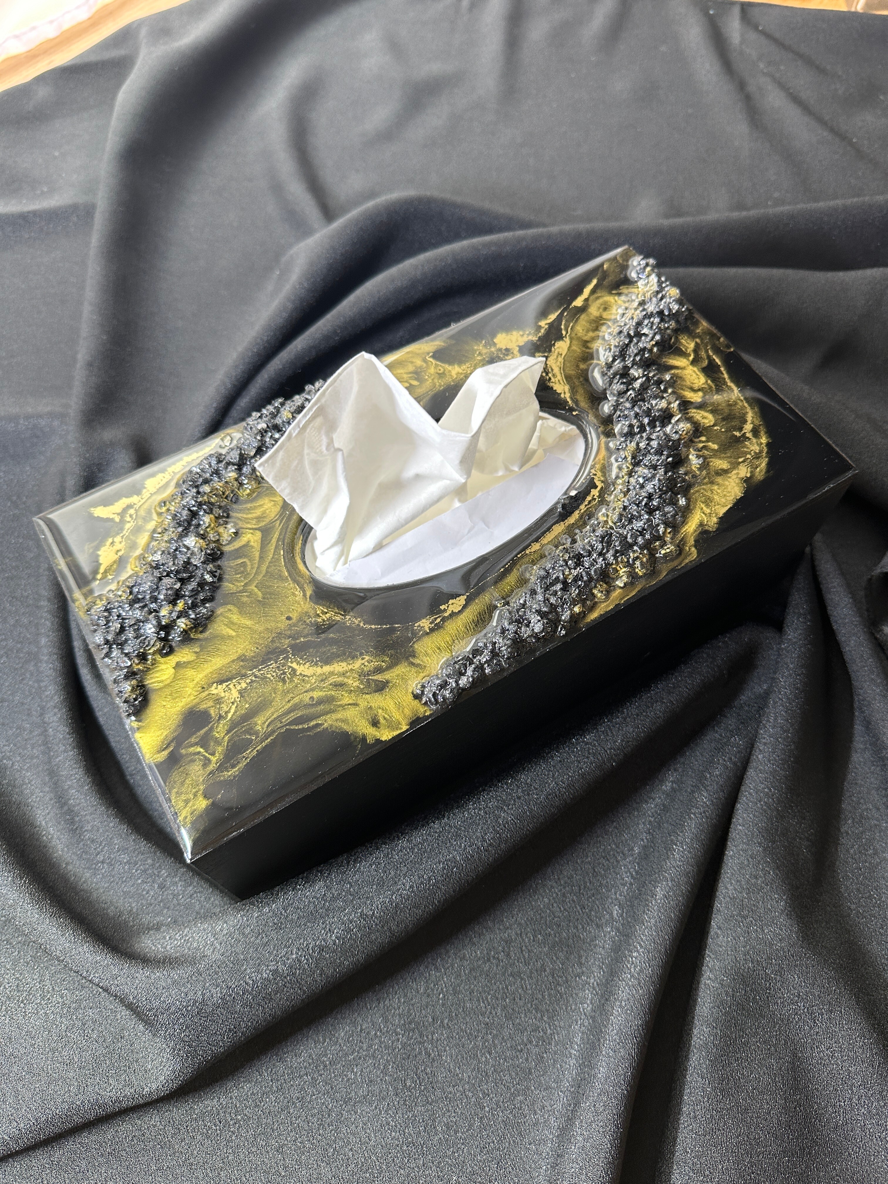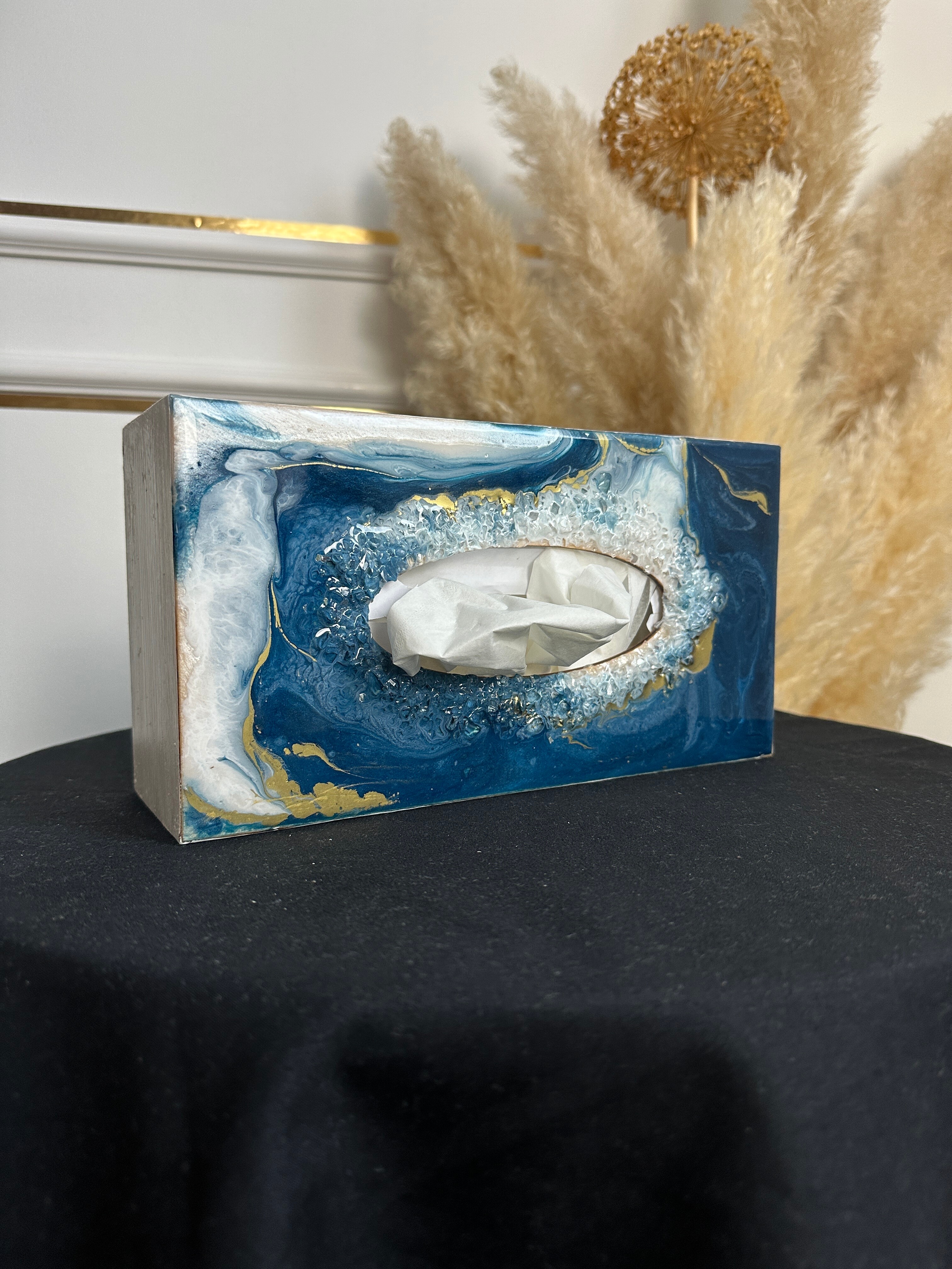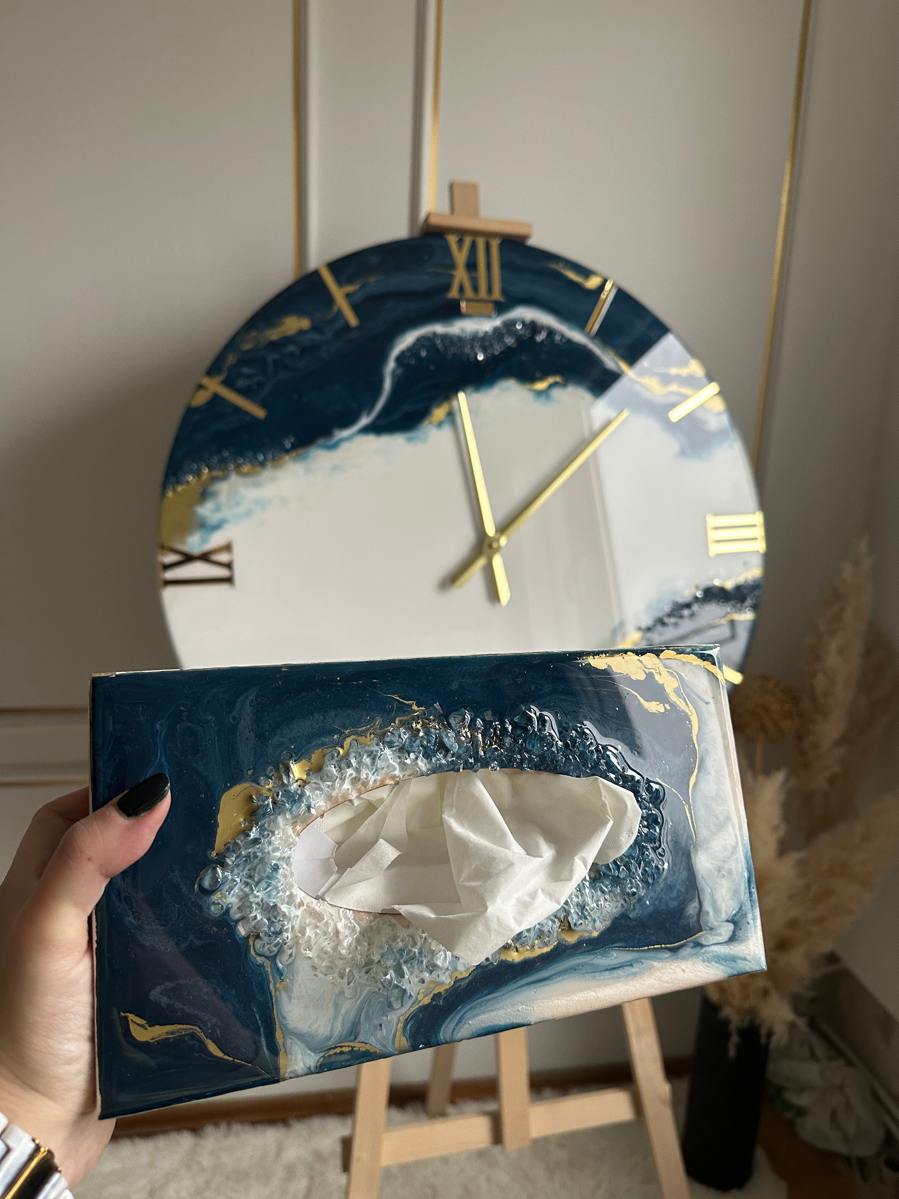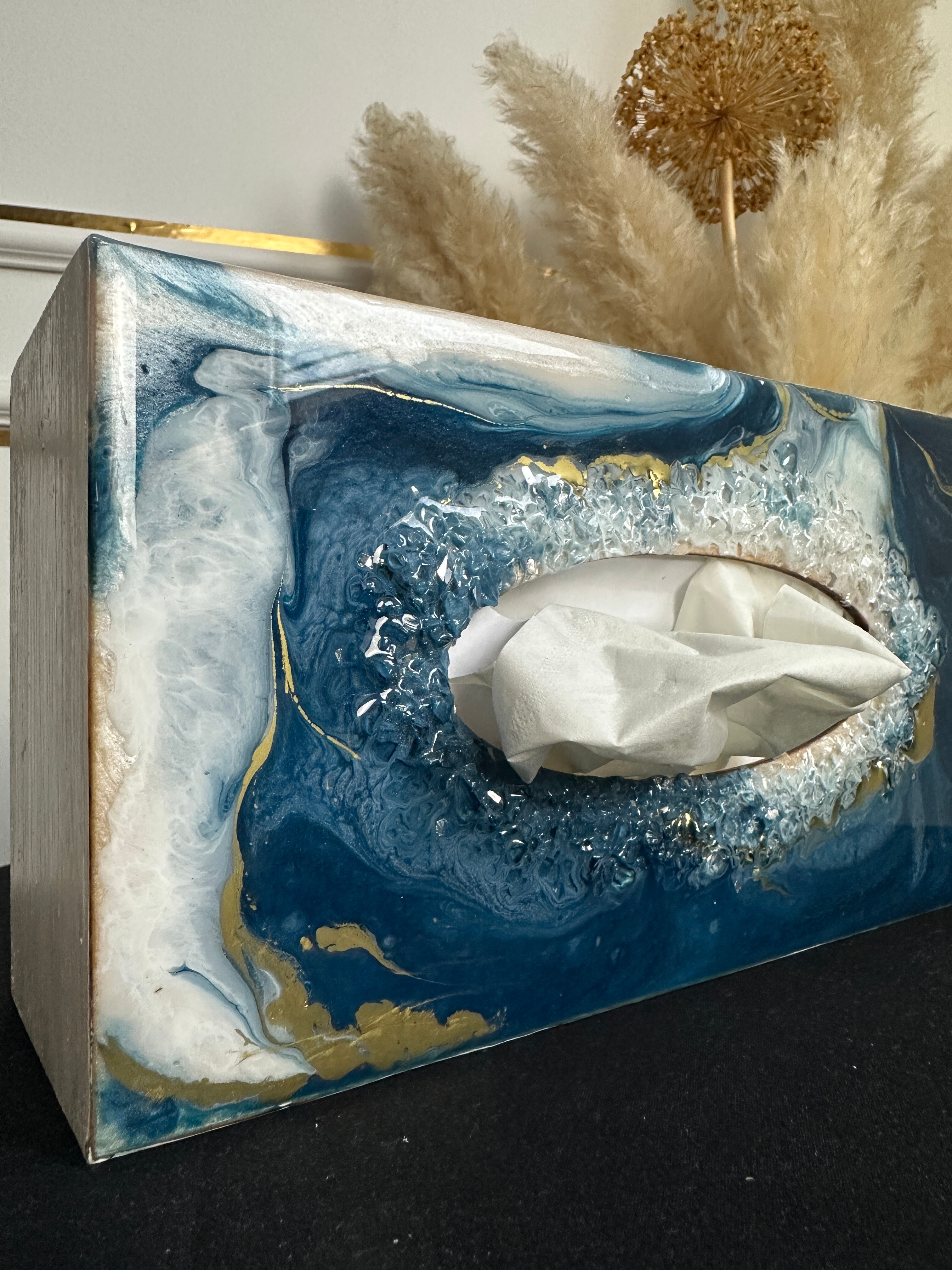Ten niezwykły materiał, jakim jest połączenie szlachetnego drewna i krystalicznej żywicy, sprawia, że każdy egzemplarz jest absolutnie unikatowy. Całość została wykonana z najwyższą dbałość o detale. Ten produkt nadaje wnętrzu niepowtarzalnego charakteru, idealnie komponując się z wystrojem salonu czy sypialni. Nasze pojemniki na chusteczki wykonane są z pasją i precyzją, co widać w każdym detalu. Każdy egzemplarz został wykończony ręką rzemieślnika.