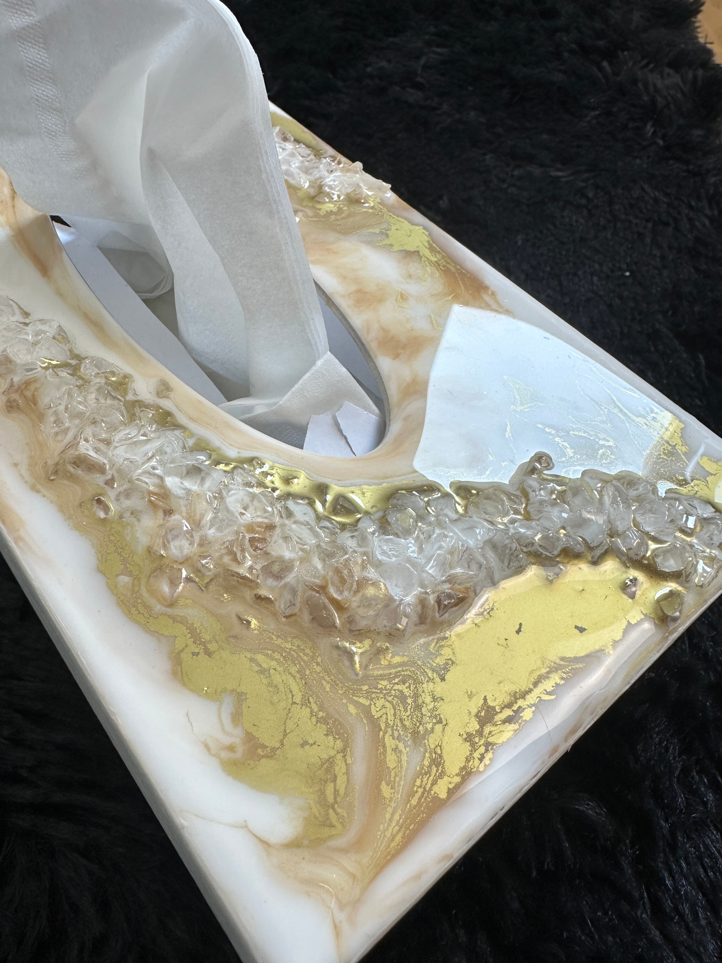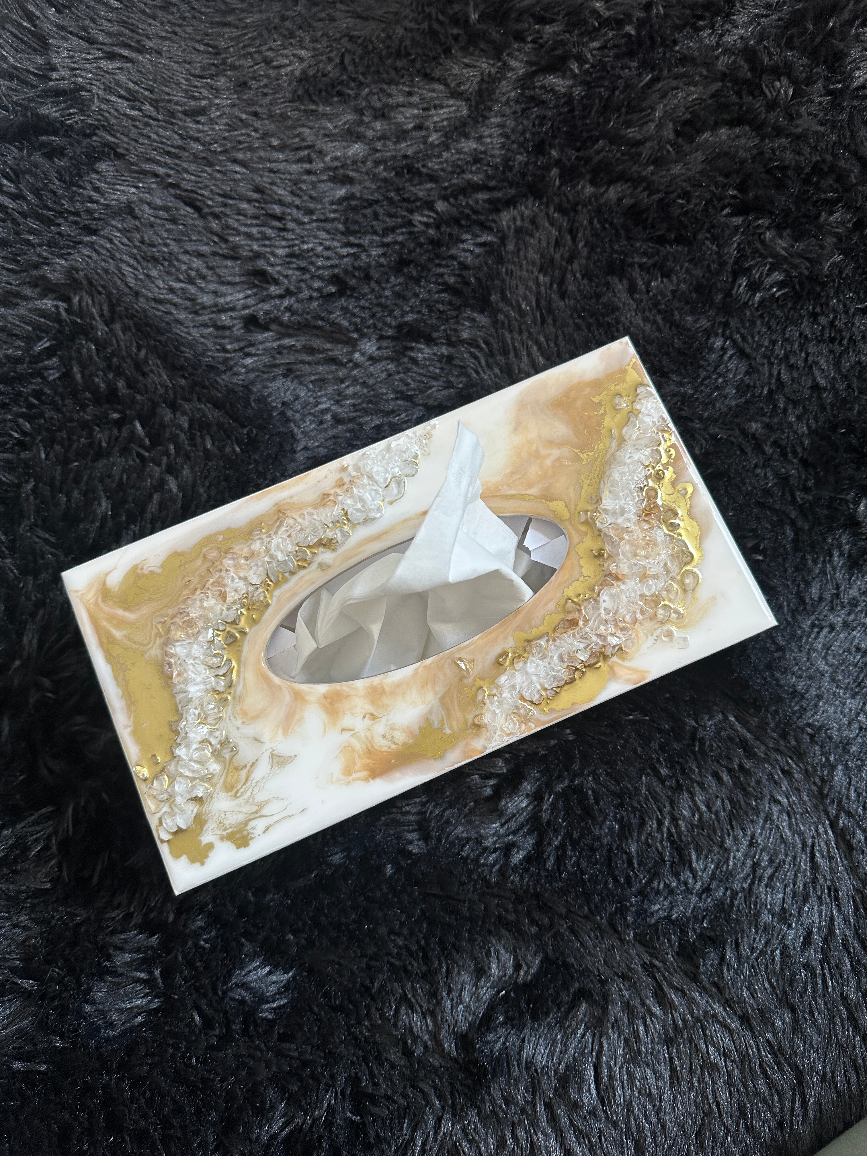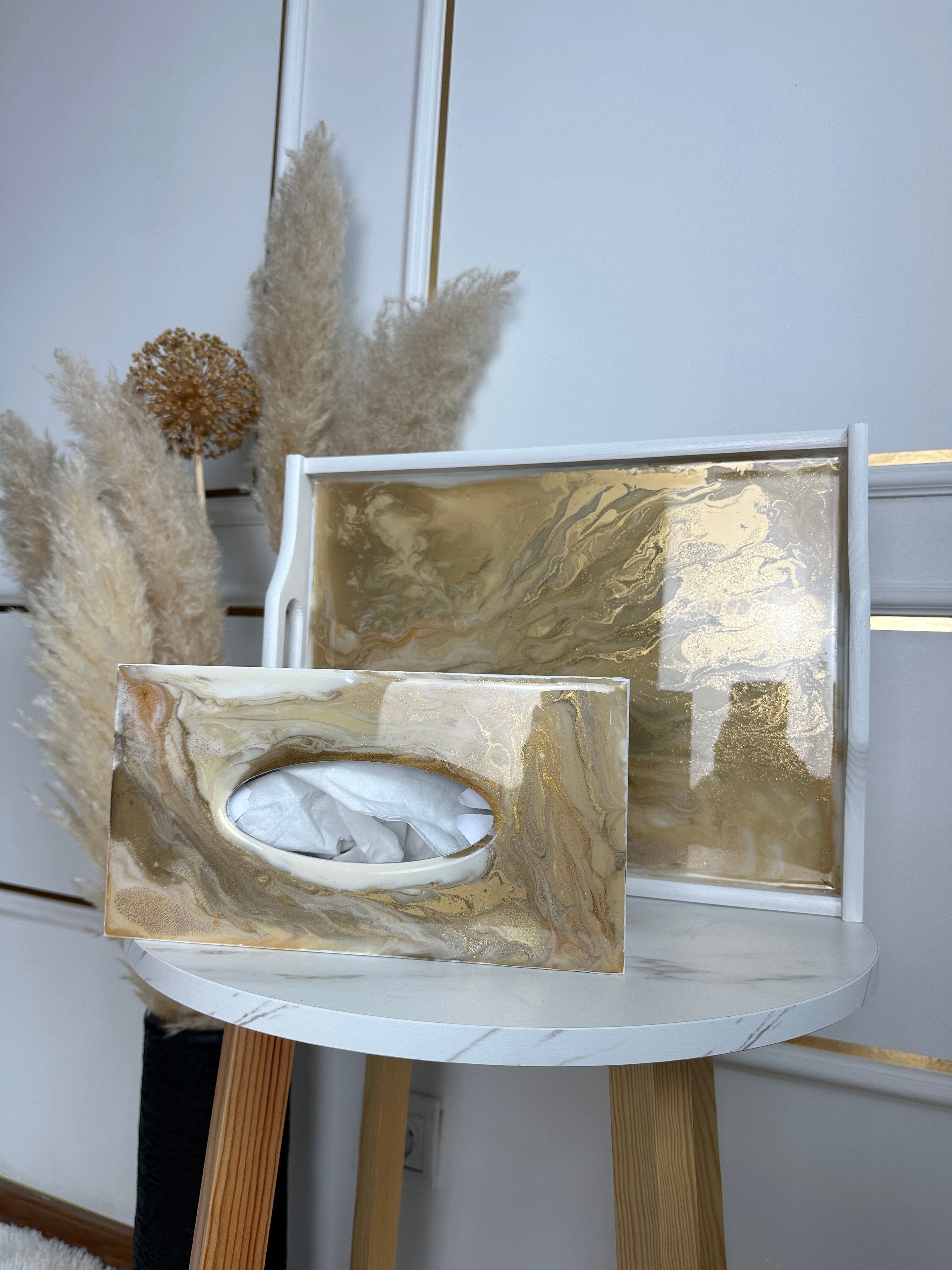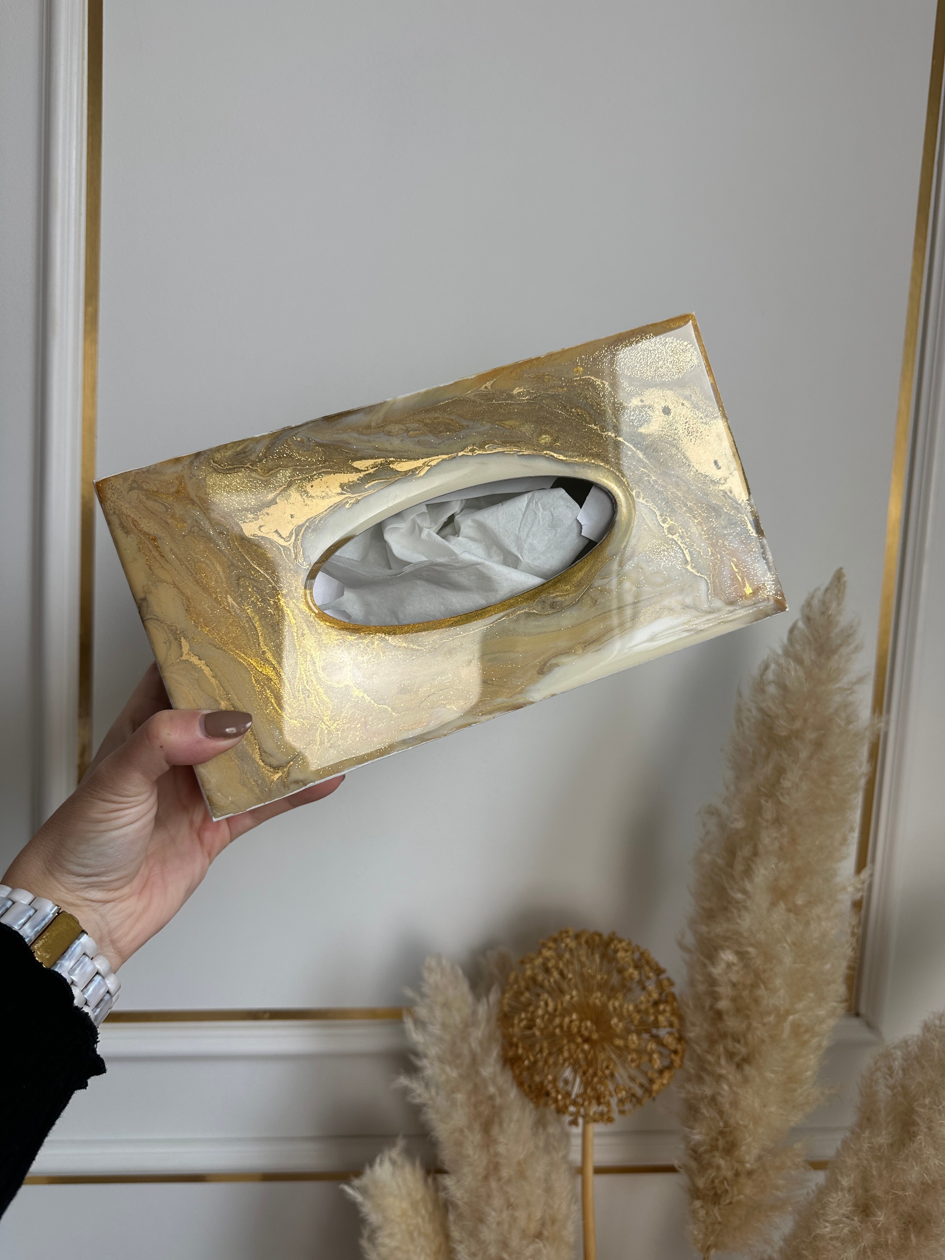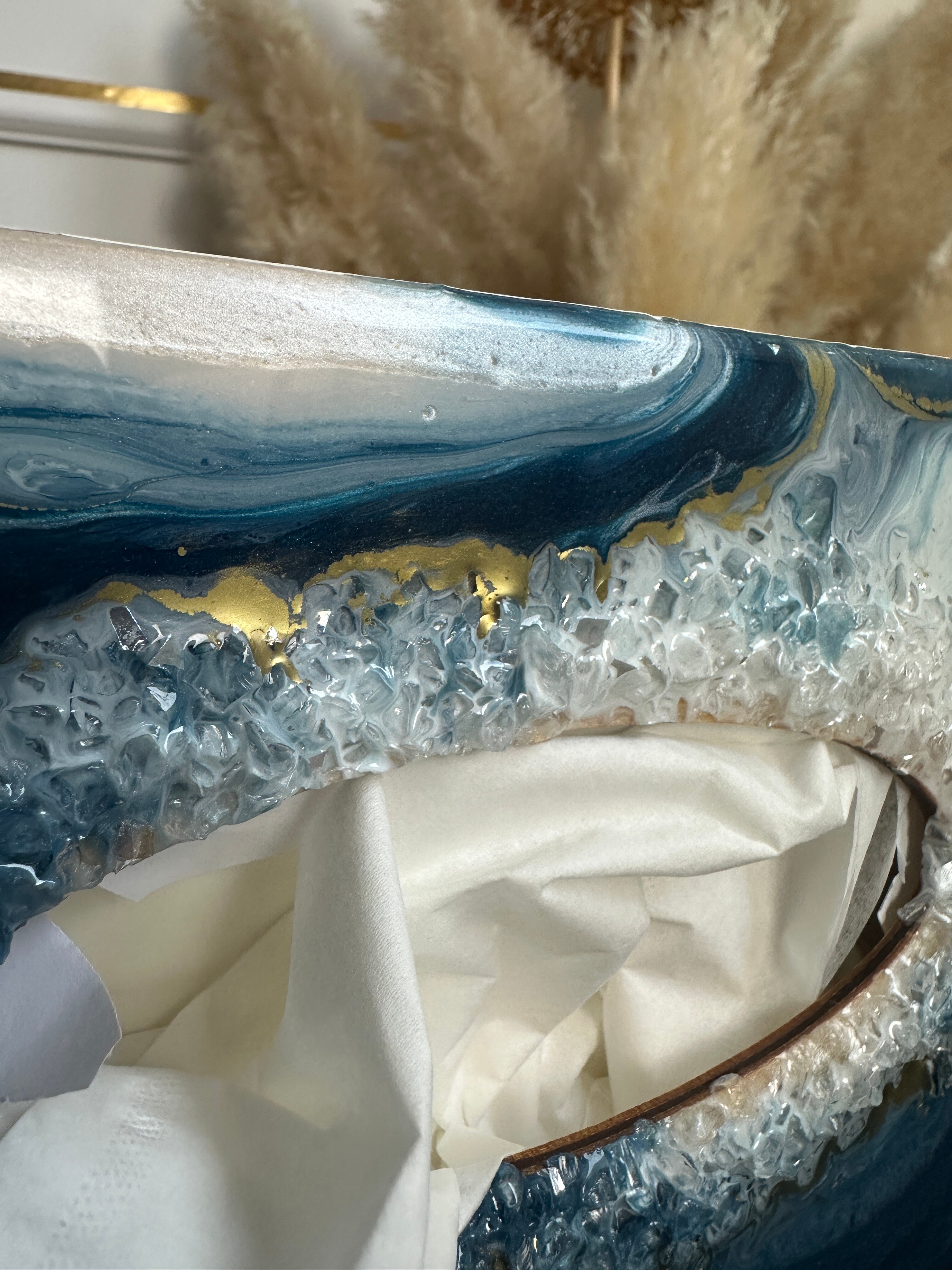Ten niezwykły materiał, jakim jest połączenie szlachetnego drewna i krystalicznej żywicy, sprawia, że każdy egzemplarz jest absolutnie unikatowy. Całość została wykonana z najwyższą dbałość o detale. Ten produkt nadaje wnętrzu niepowtarzalnego charakteru, idealnie komponując się z wystrojem salonu czy sypialni. Nasze pojemniki na chusteczki wykonane są z pasją i precyzją, co widać w każdym detalu. Każdy egzemplarz został wykończony ręką rzemieślnika.