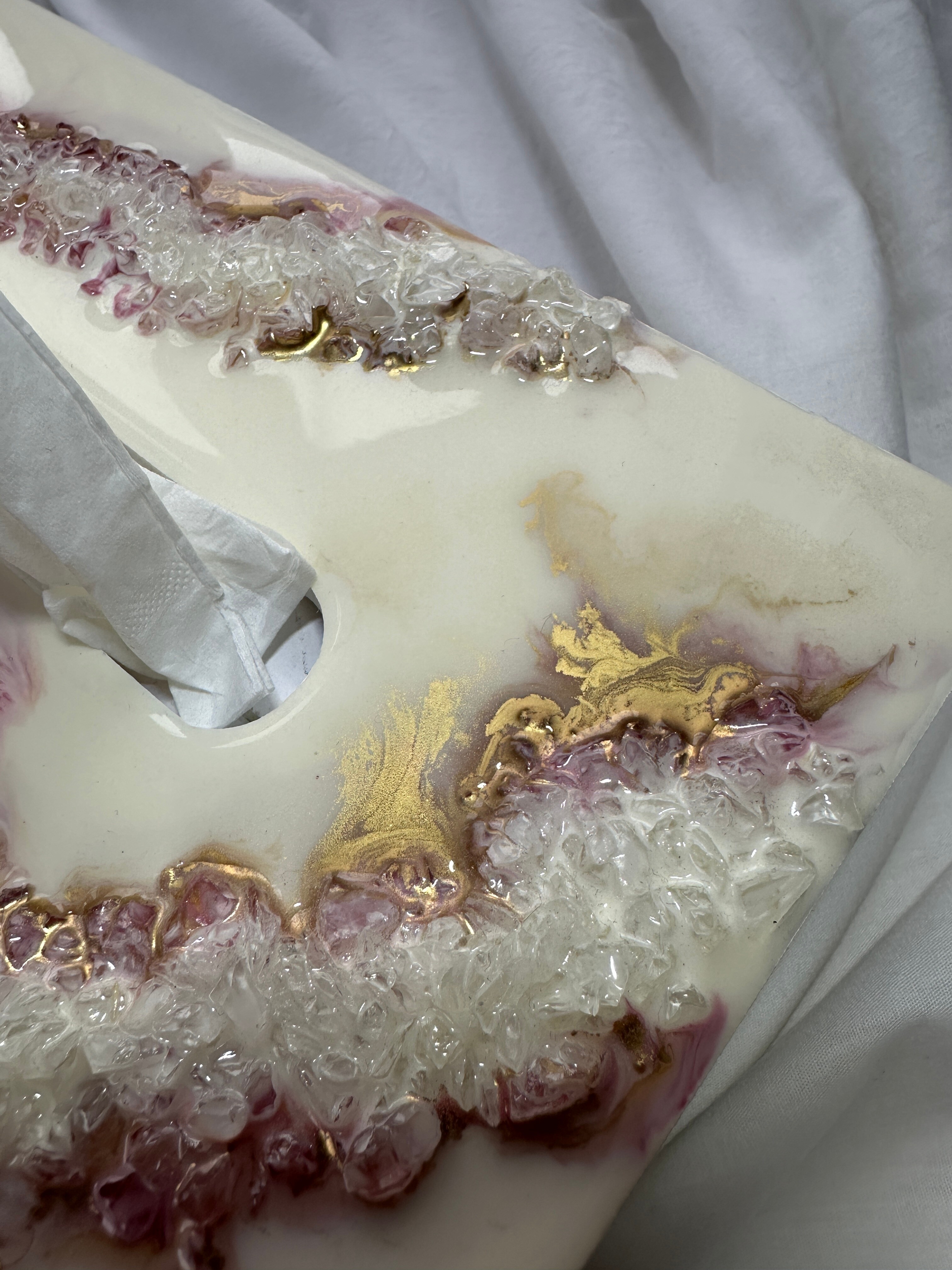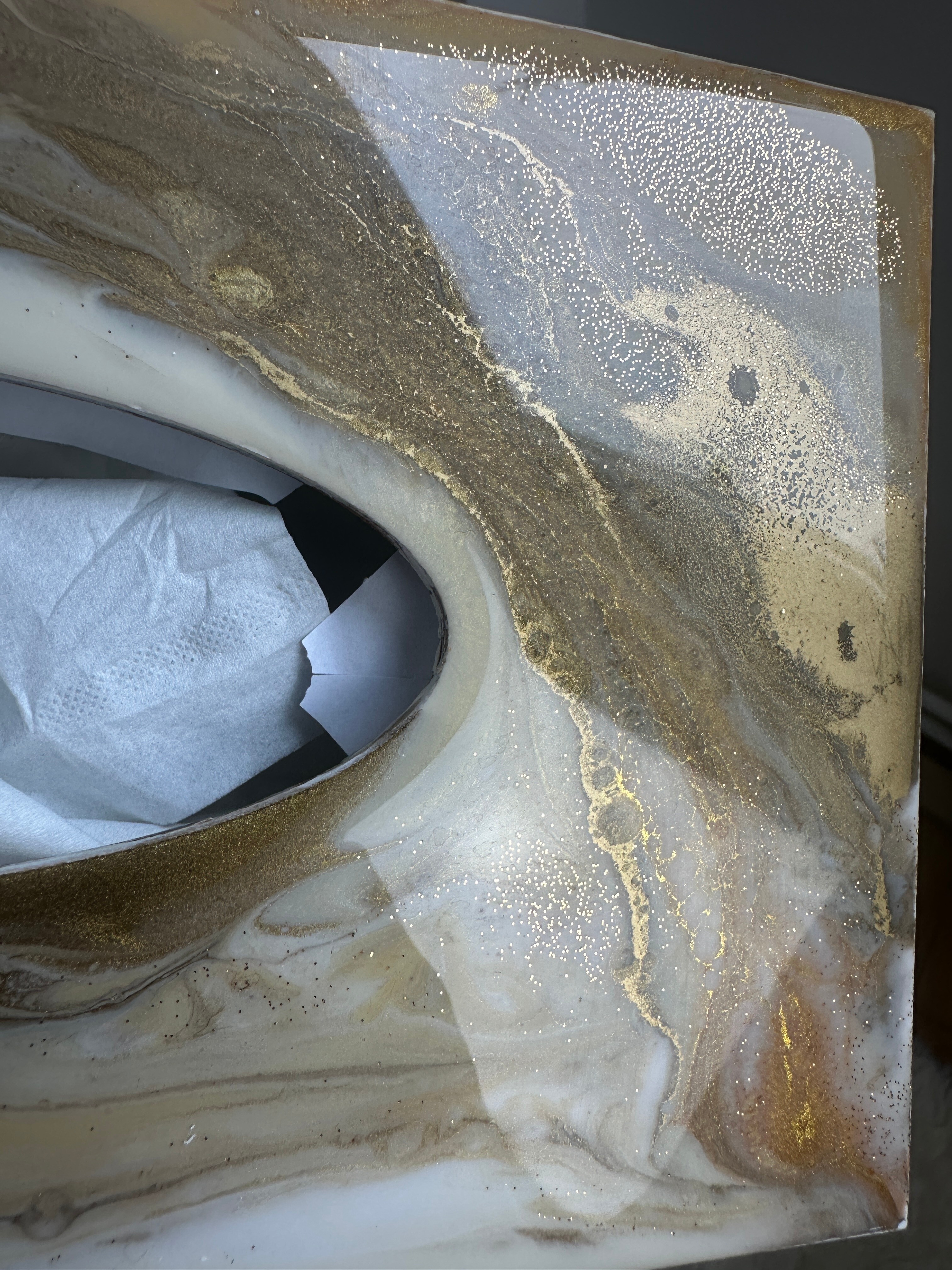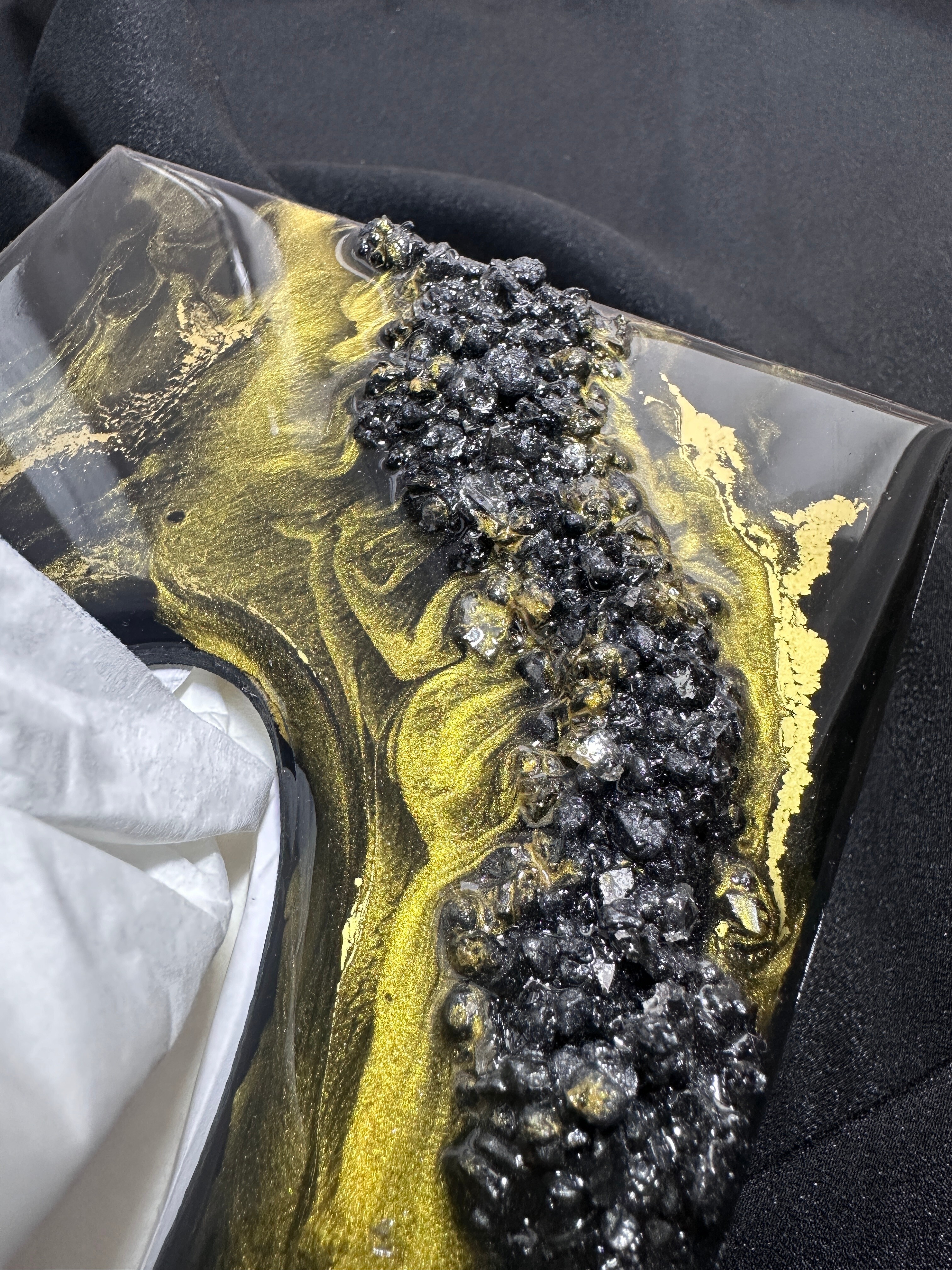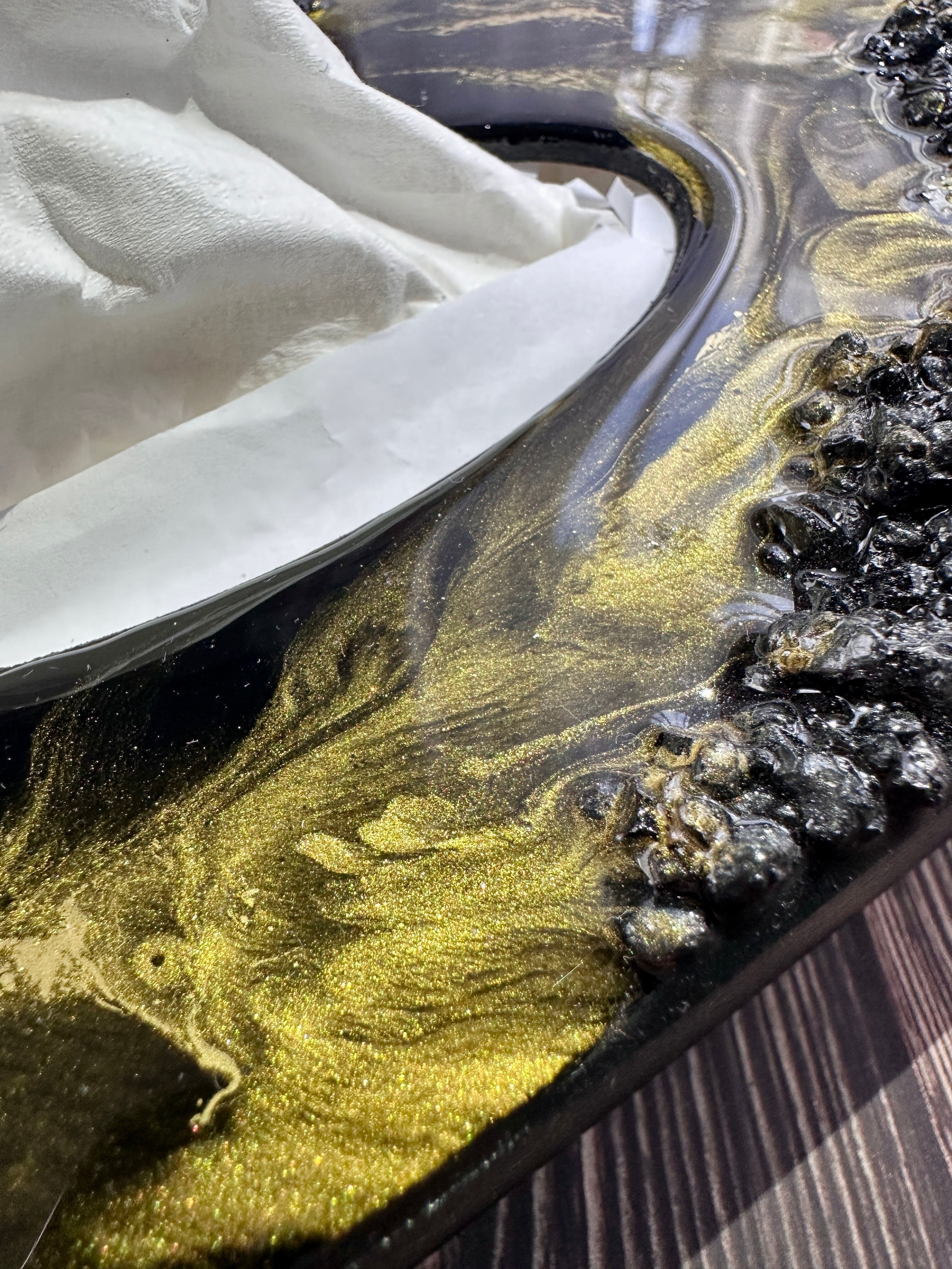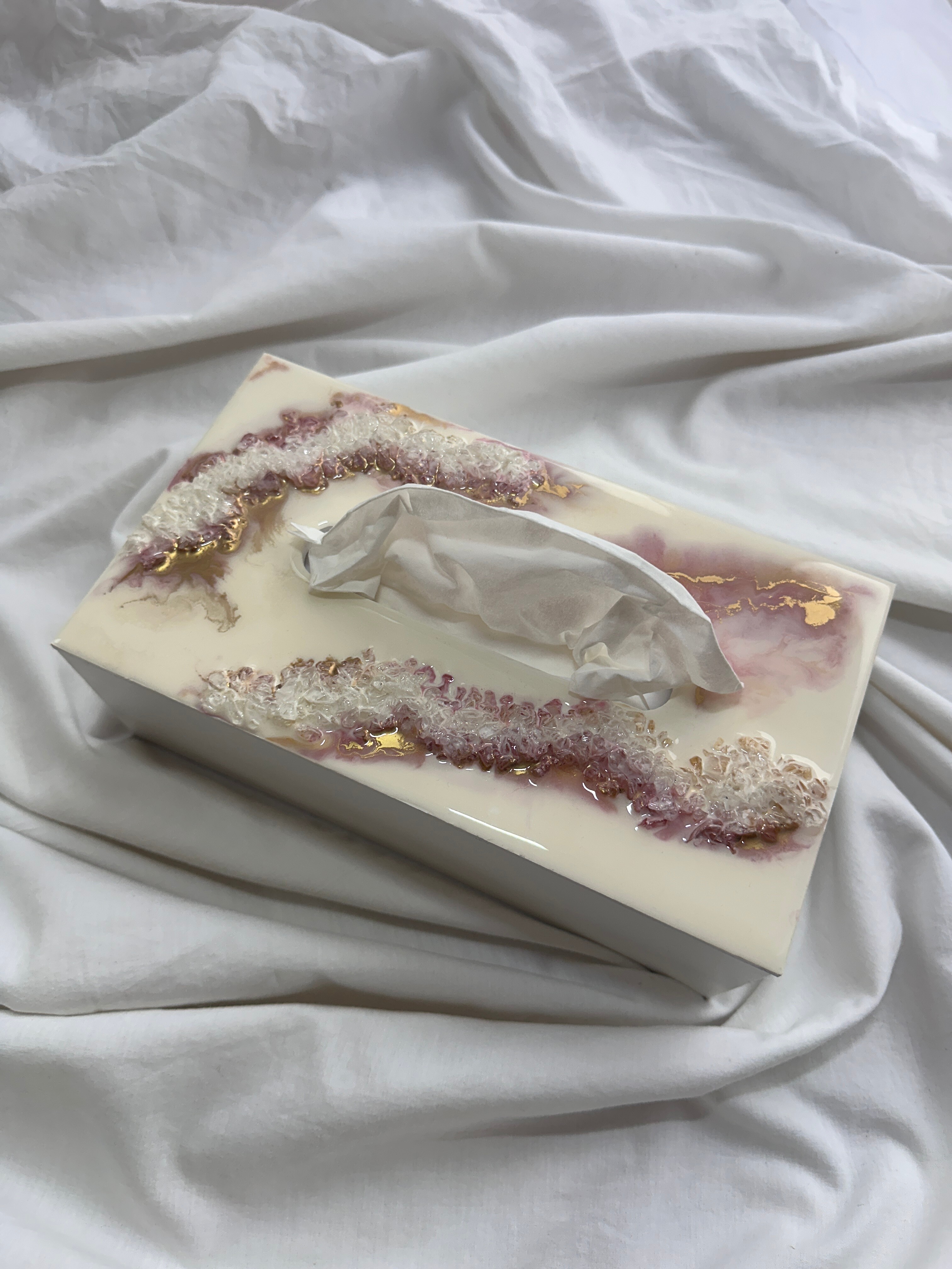 Ten niezwykły materiał, jakim jest połączenie szlachetnego drewna i krystalicznej żywicy, sprawia, że każdy egzemplarz jest absolutnie unikatowy. Całość została wykonana z najwyższą dbałość o detale. Ten produkt nadaje wnętrzu niepowtarzalnego charakteru, idealnie komponując się z wystrojem salonu czy sypialni. Nasze pojemniki na chusteczki wykonane są z pasją i precyzją, co widać w każdym detalu. Każdy egzemplarz został wykończony ręką rzemieślnika.