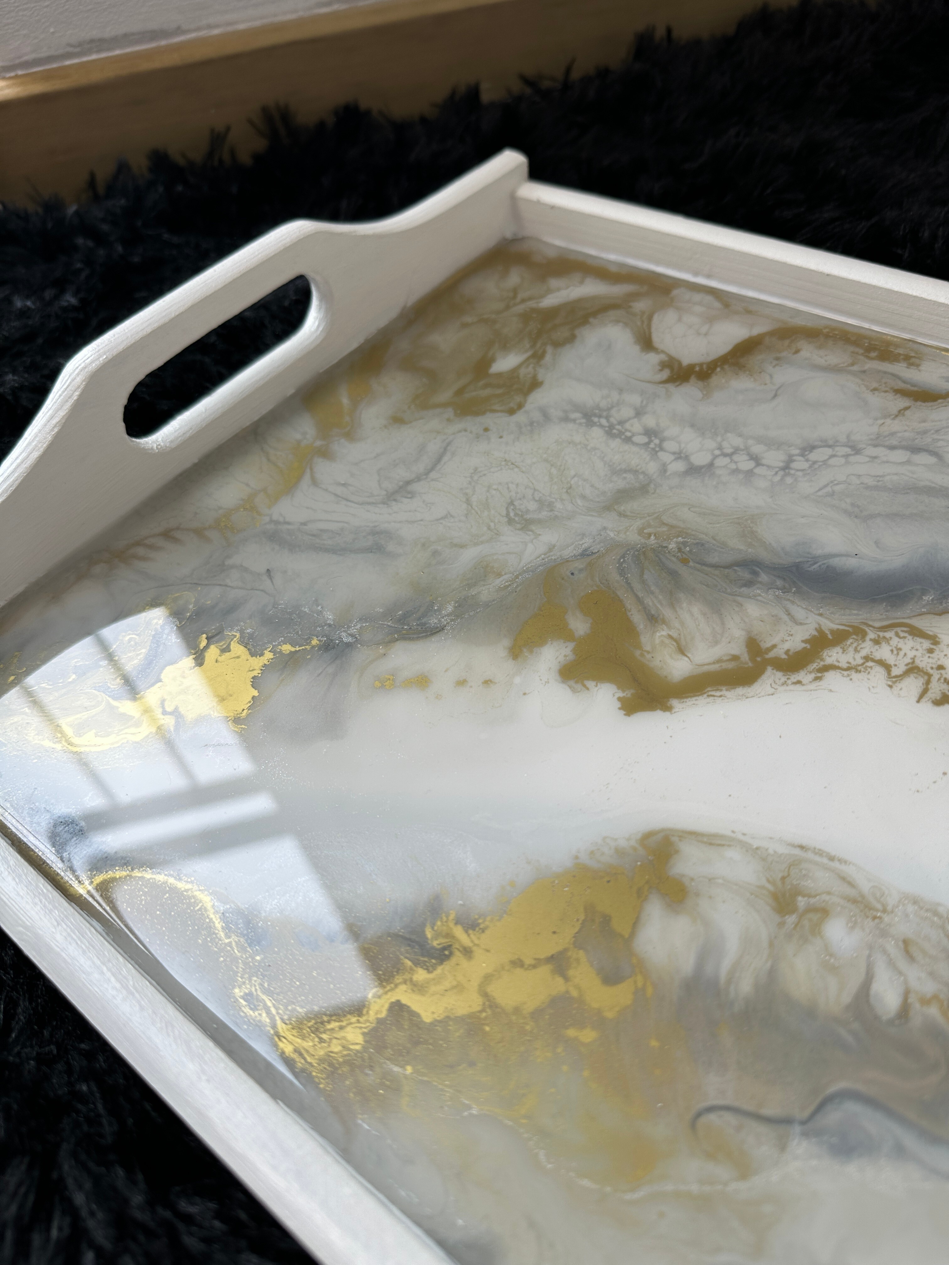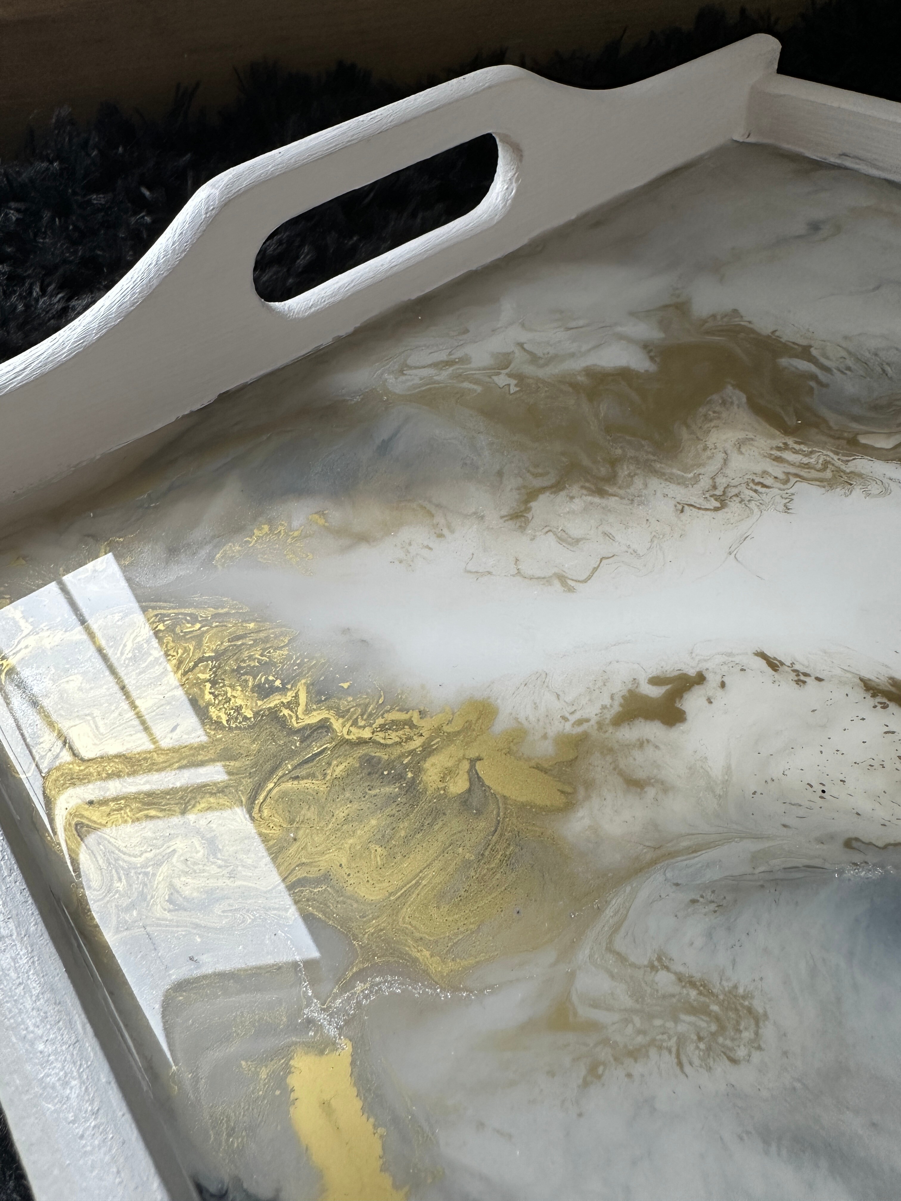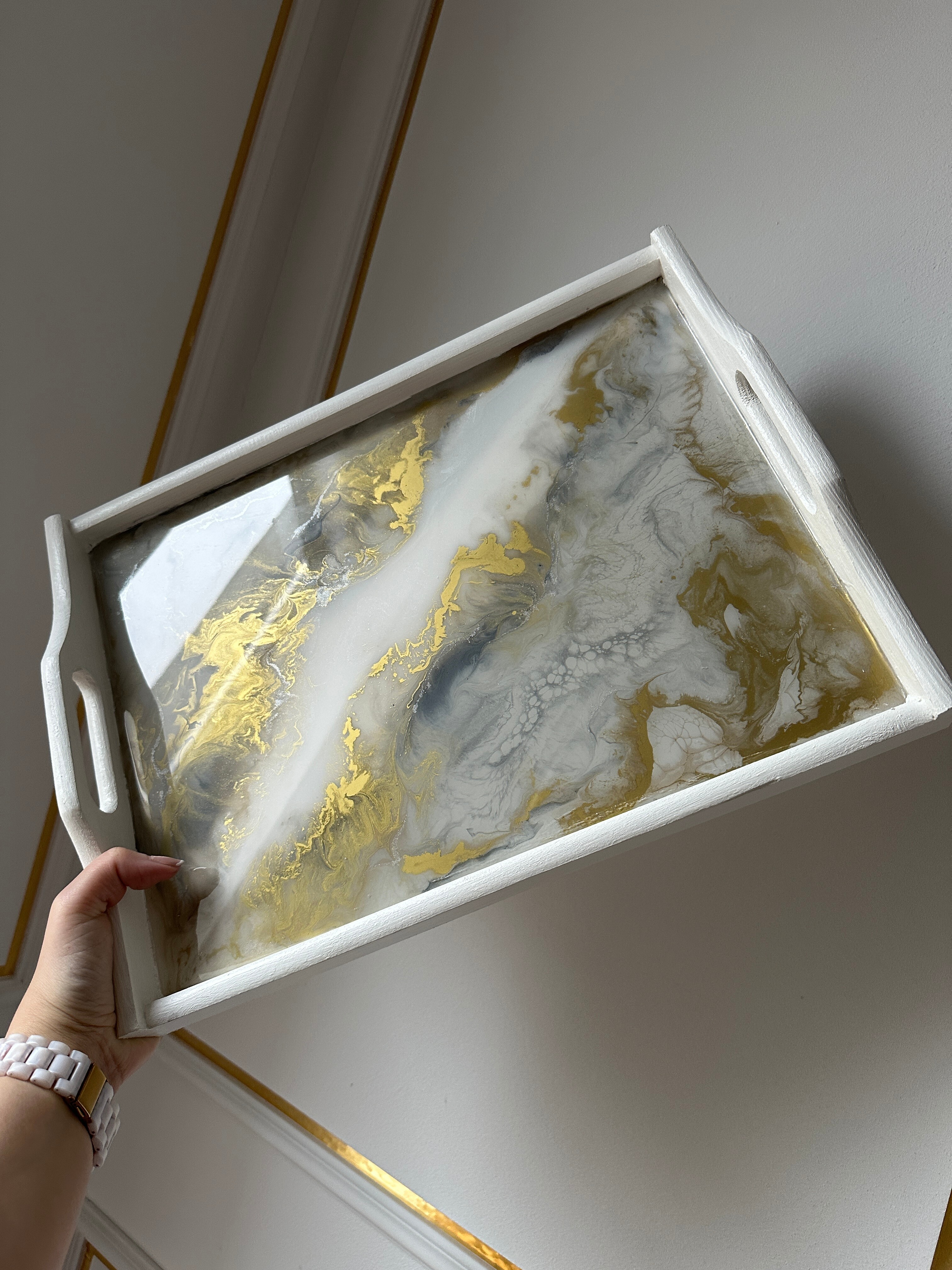 Pamiętaj, że żywica epoksydowa to materiał twardy i trwały, ale wymaga odpowiedniej pielęgnacji. Każda taca z żywicy jest przez nas starannie wykończona, a jej powierzchni jest gładka i lśniąca. Jest ona w pełni zabezpieczona specjalnym preparatem, dzięki czemu jest odporna na zarysowania przy normalnym użytkowaniu.