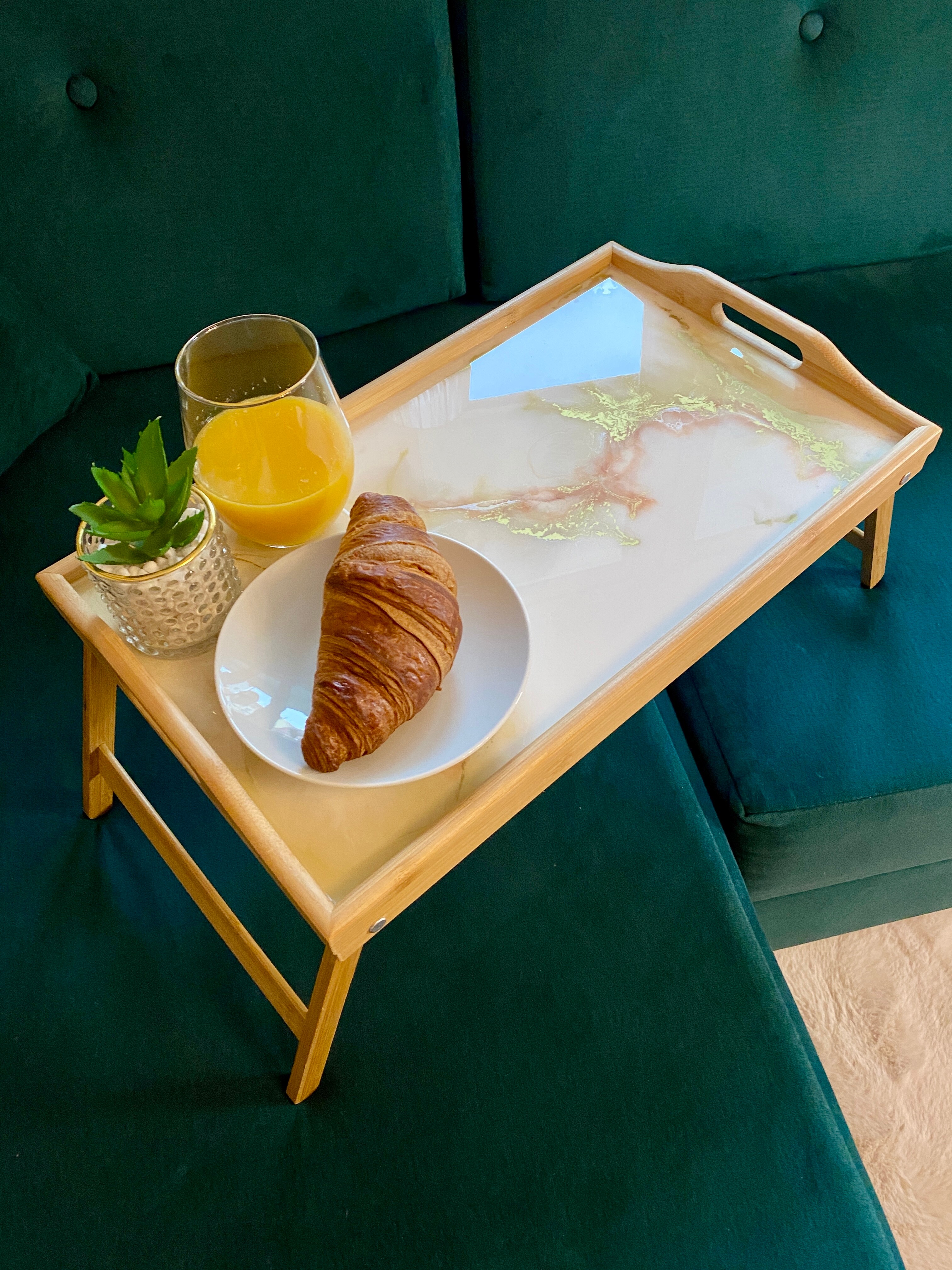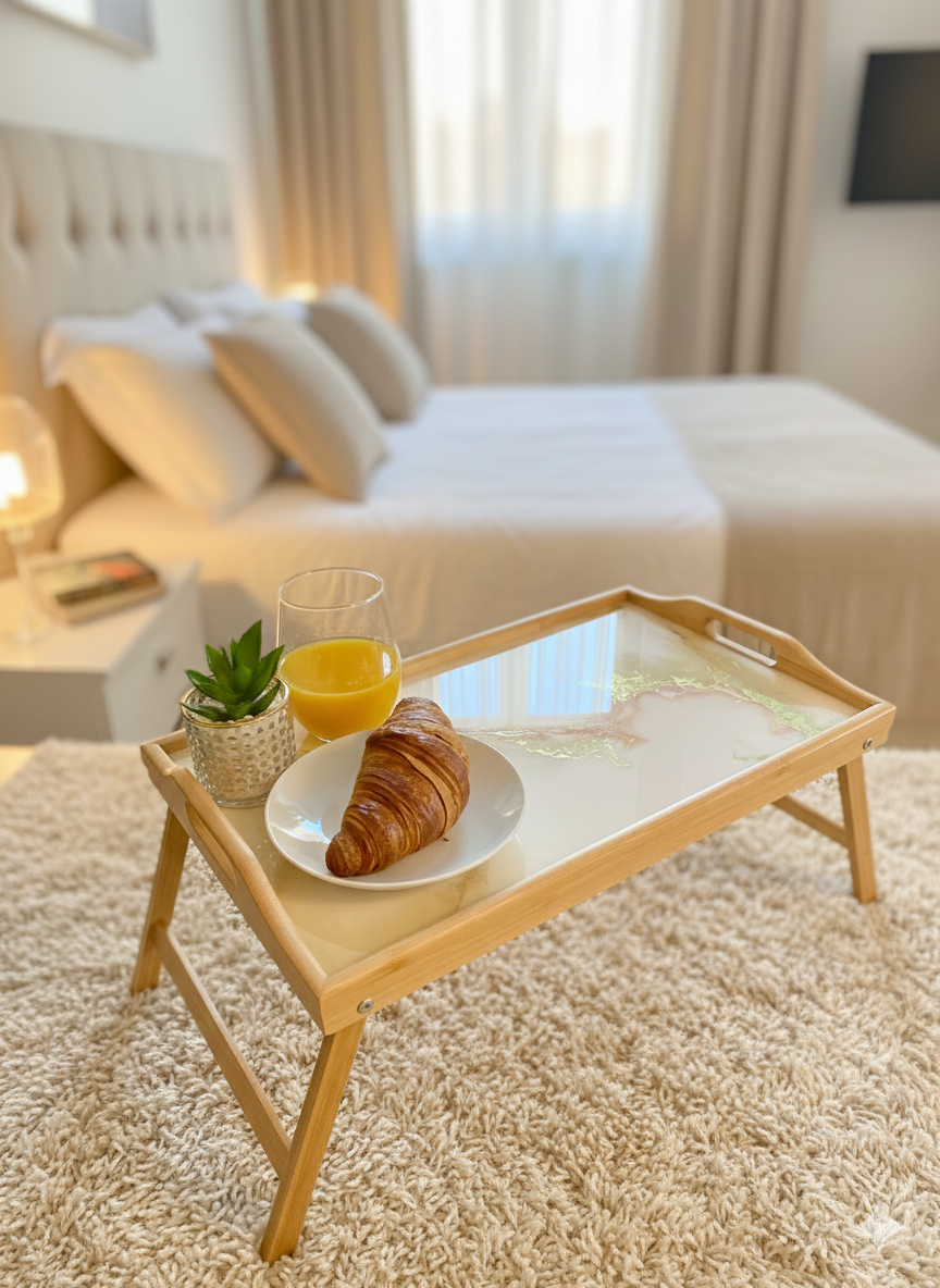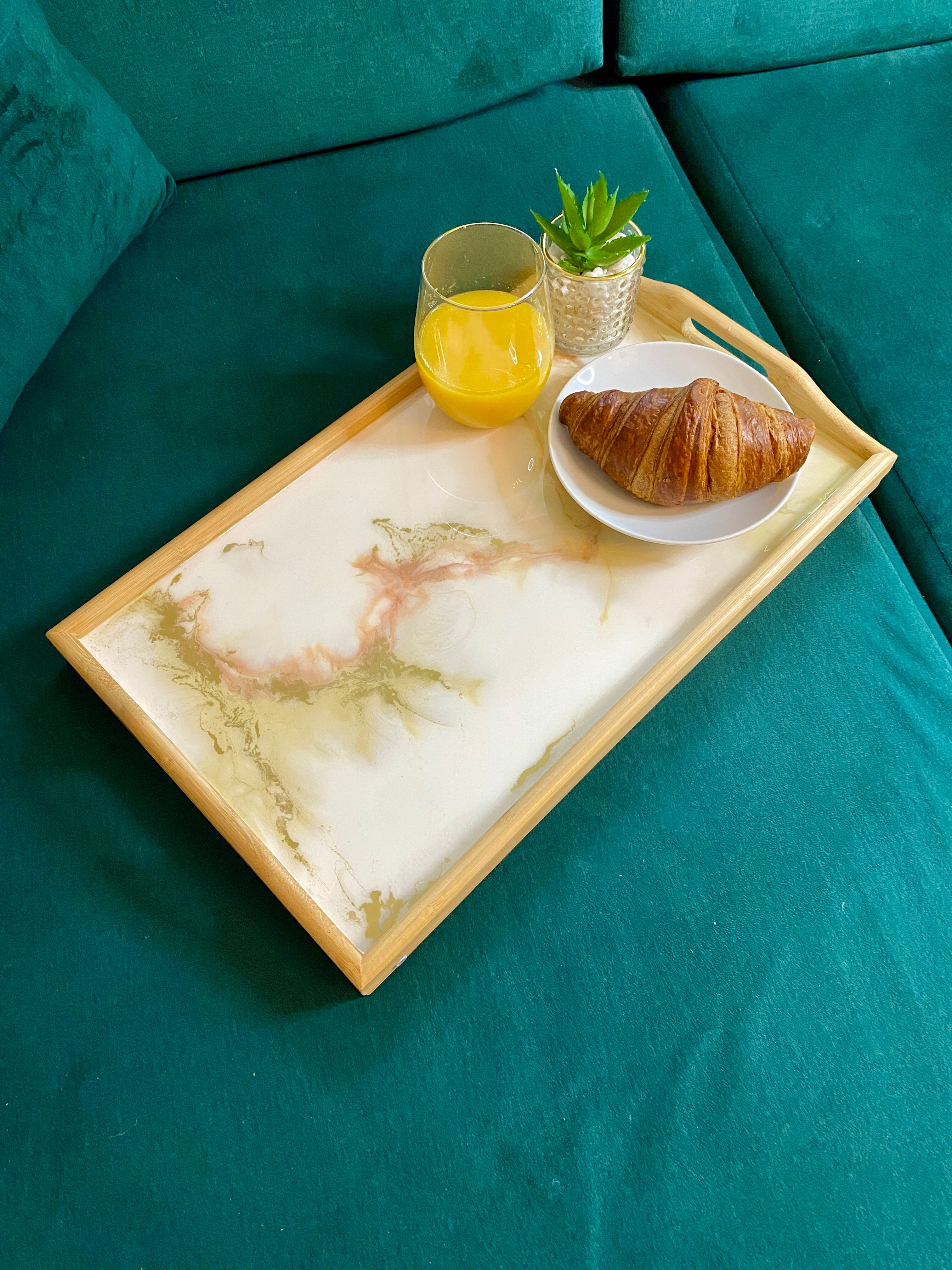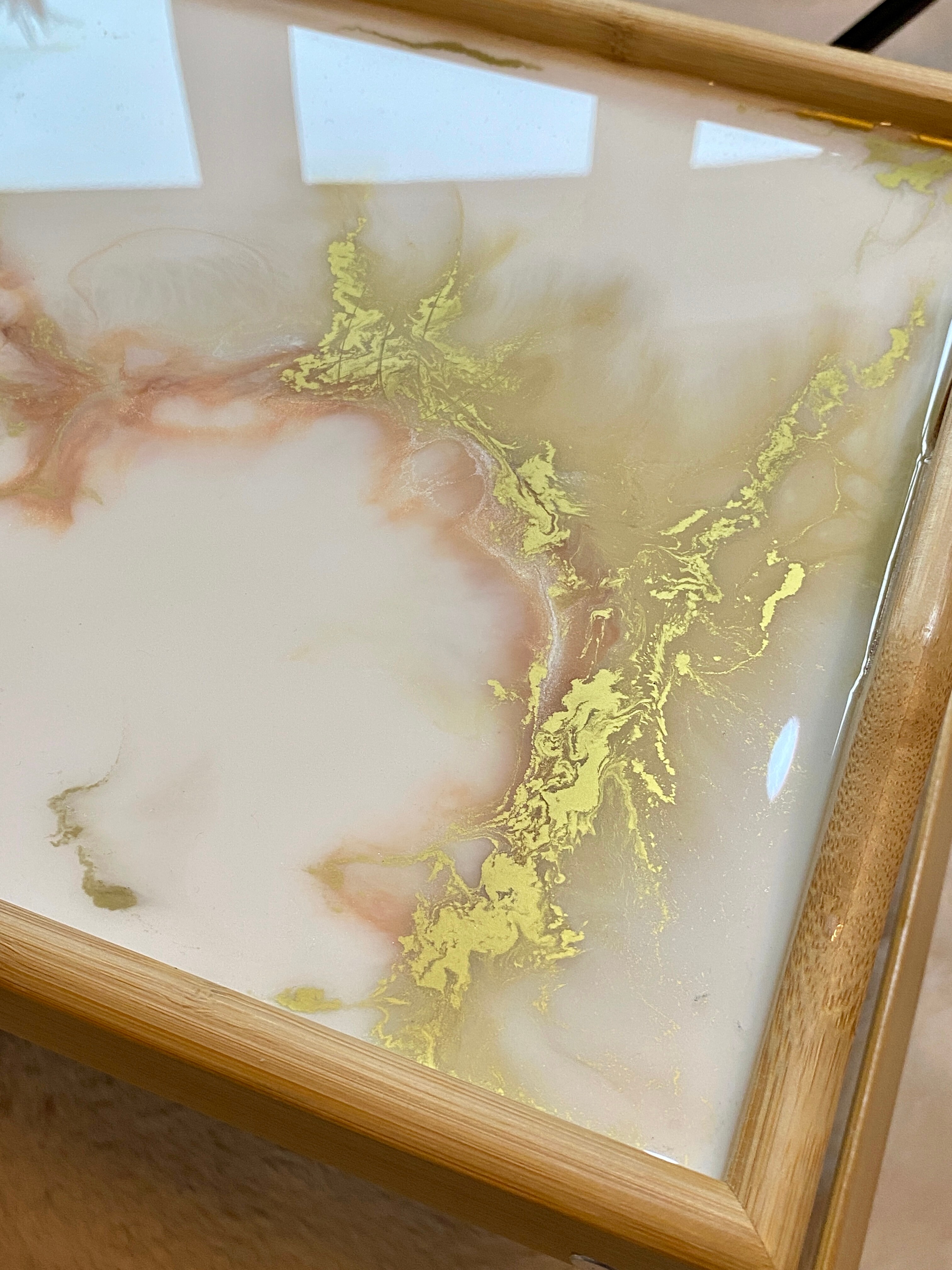 Pamiętaj, że żywica epoksydowa to materiał twardy i trwały, ale wymaga odpowiedniej pielęgnacji. Każda taca z żywicy jest przez nas starannie wykończona, a jej powierzchni jest gładka i lśniąca. Jest ona w pełni zabezpieczona specjalnym preparatem, dzięki czemu jest odporna na zarysowania przy normalnym użytkowaniu.