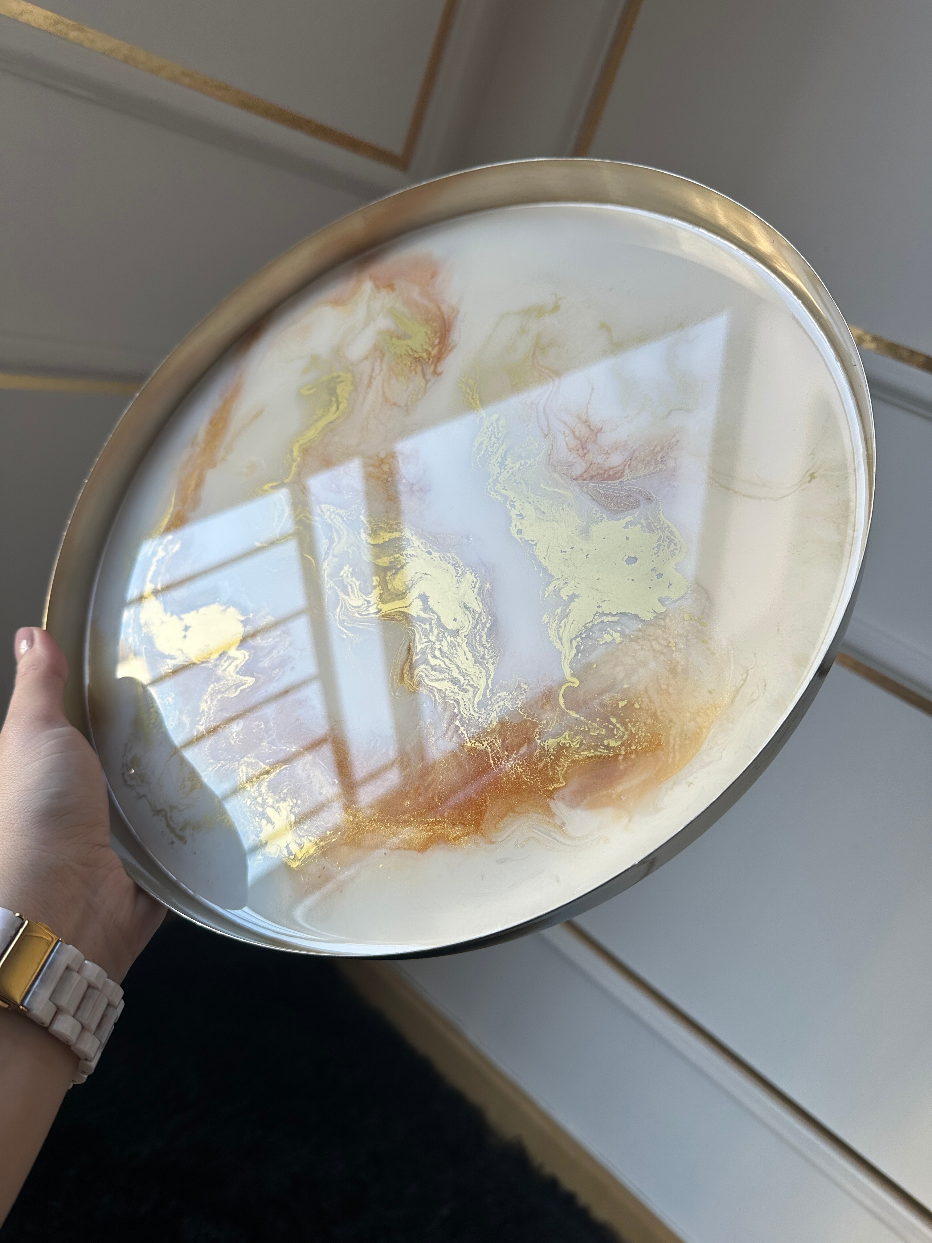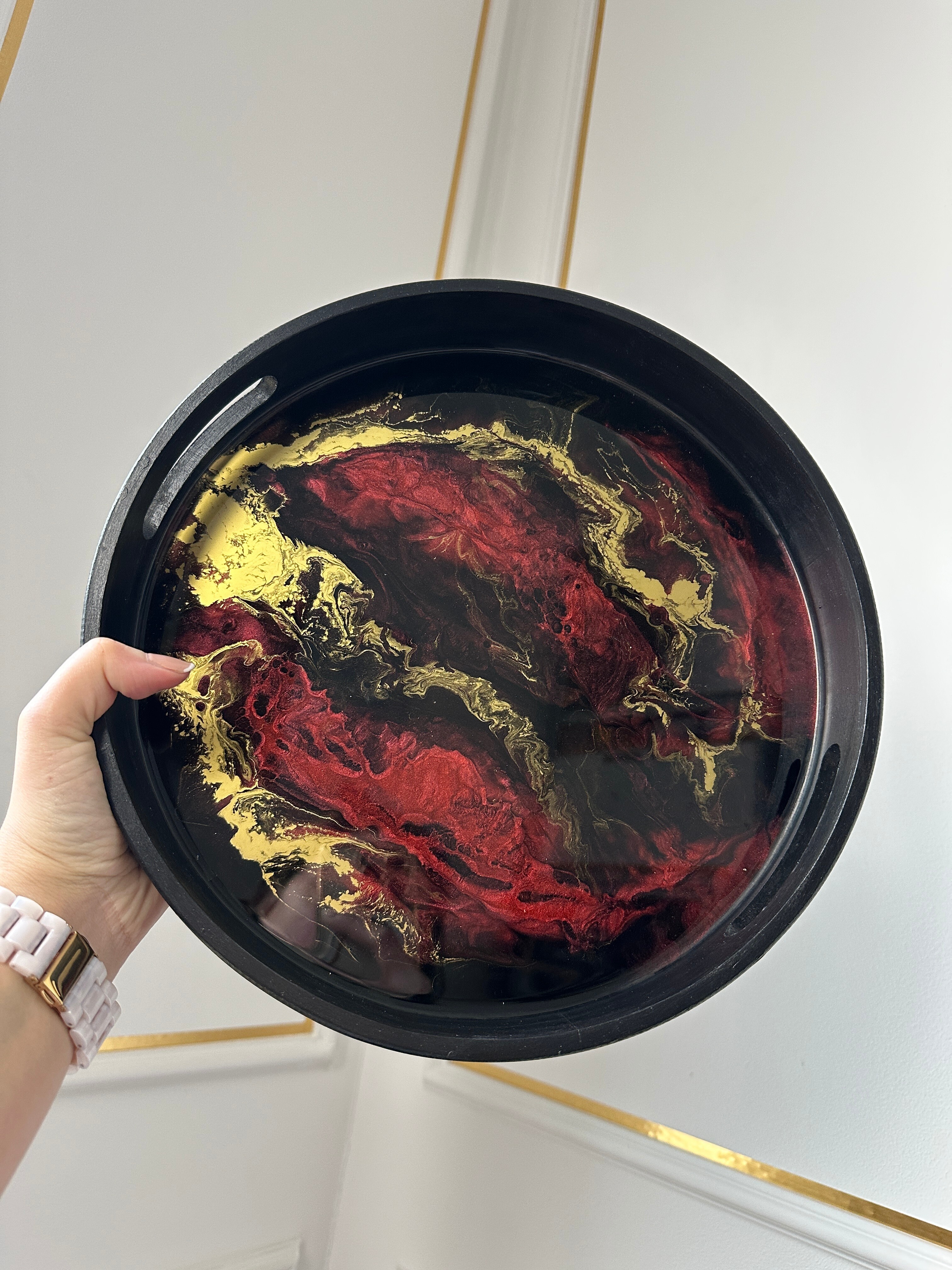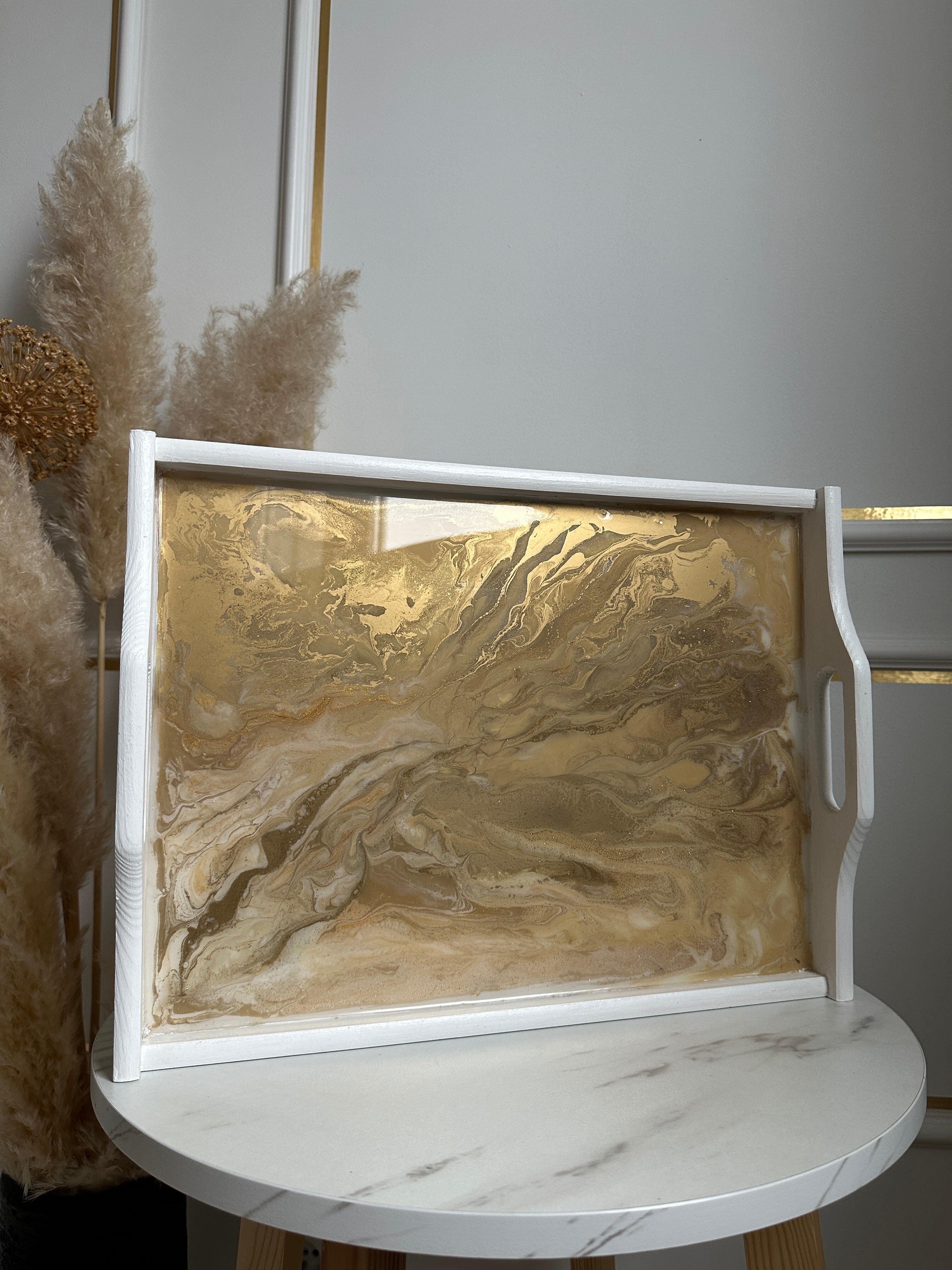 Ta piękna patera ozdobi Twoją komodę. Inna, mniejsza patera, sprawdzi się w łazience. A duża, efektowna patera będzie królować w salonie. Projektując nasze produkty, myślimy o różnorodnych stylach – od minimalistycznych po bogato zdobione wnętrza. Nam zależy, by nasza patera idealnie wpasowała się w Twoją przestrzeń. Dlatego jeśli marzy Ci się patera, do której do żywicy epoksydowej dodajmy elementy w Twoim ulubionym kolorze – napisz do nas! Personalizacja to nasza specjalność. Ostateczny wygląd patera zależy od Ciebie.
