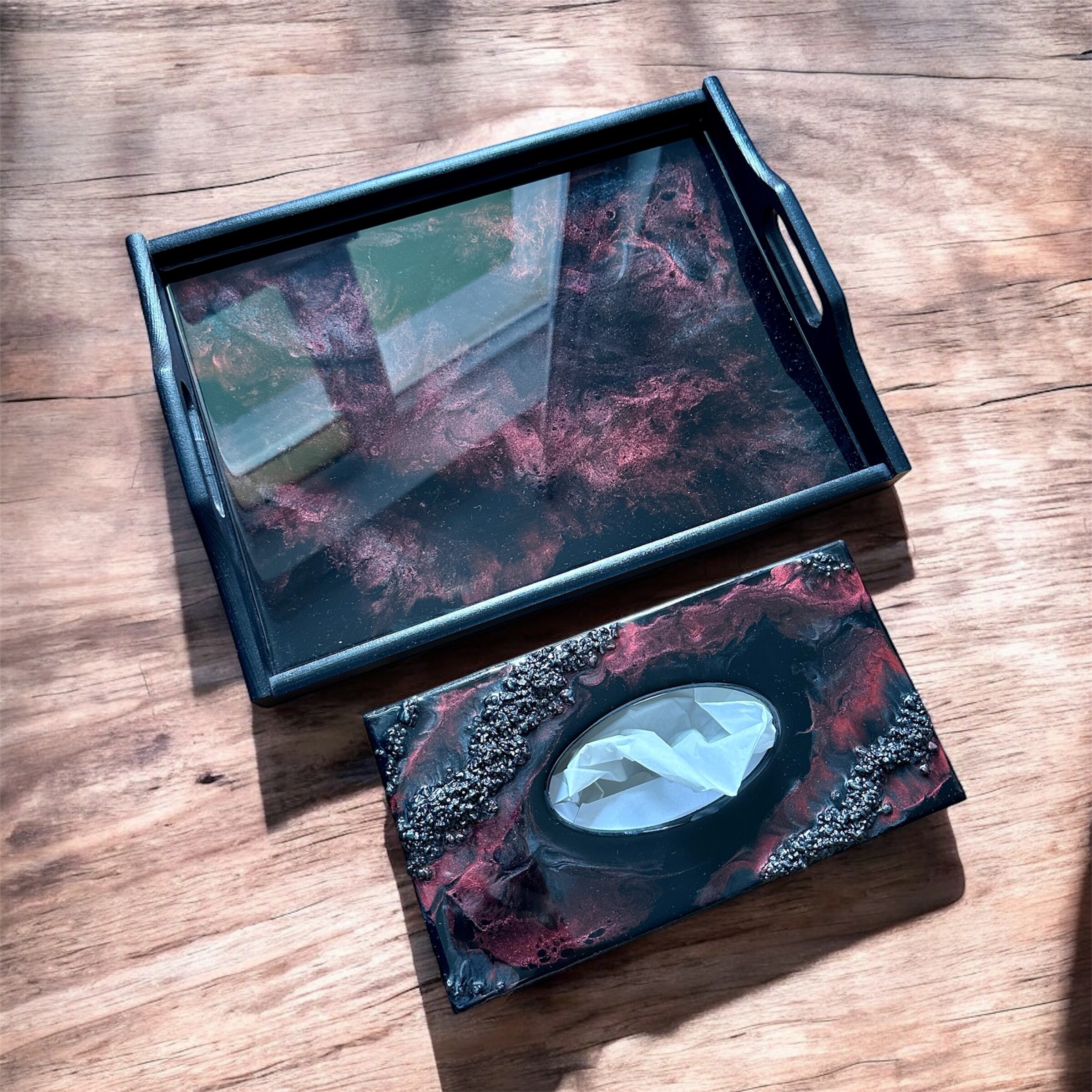 Znajdziesz tutaj wyjątkowe dekoracje, które odmienią Twoje wnętrze. Prezentuję niezwykłe tace i dekoracje, których sercem jest żywica w połączeniu z drewnem.