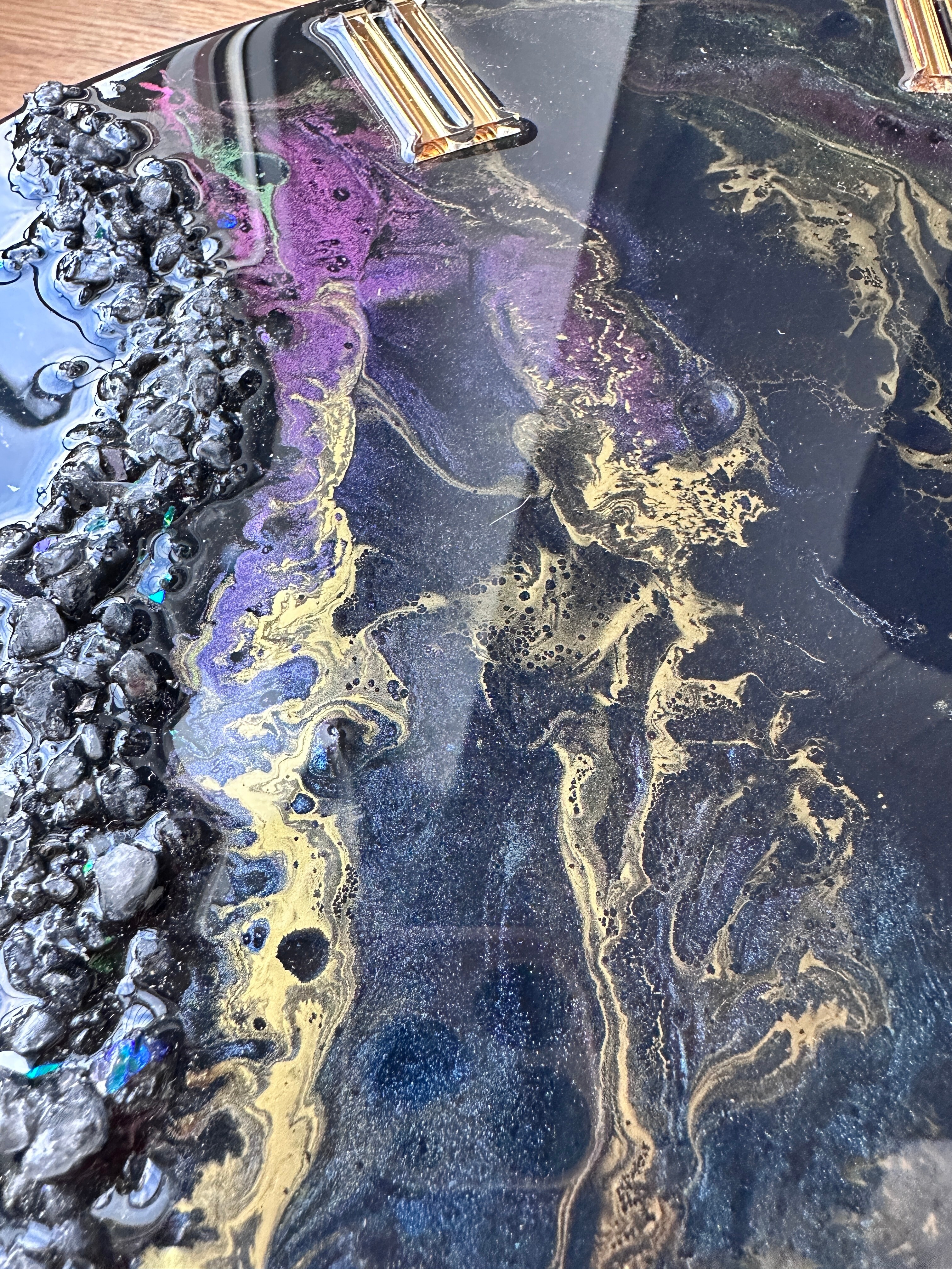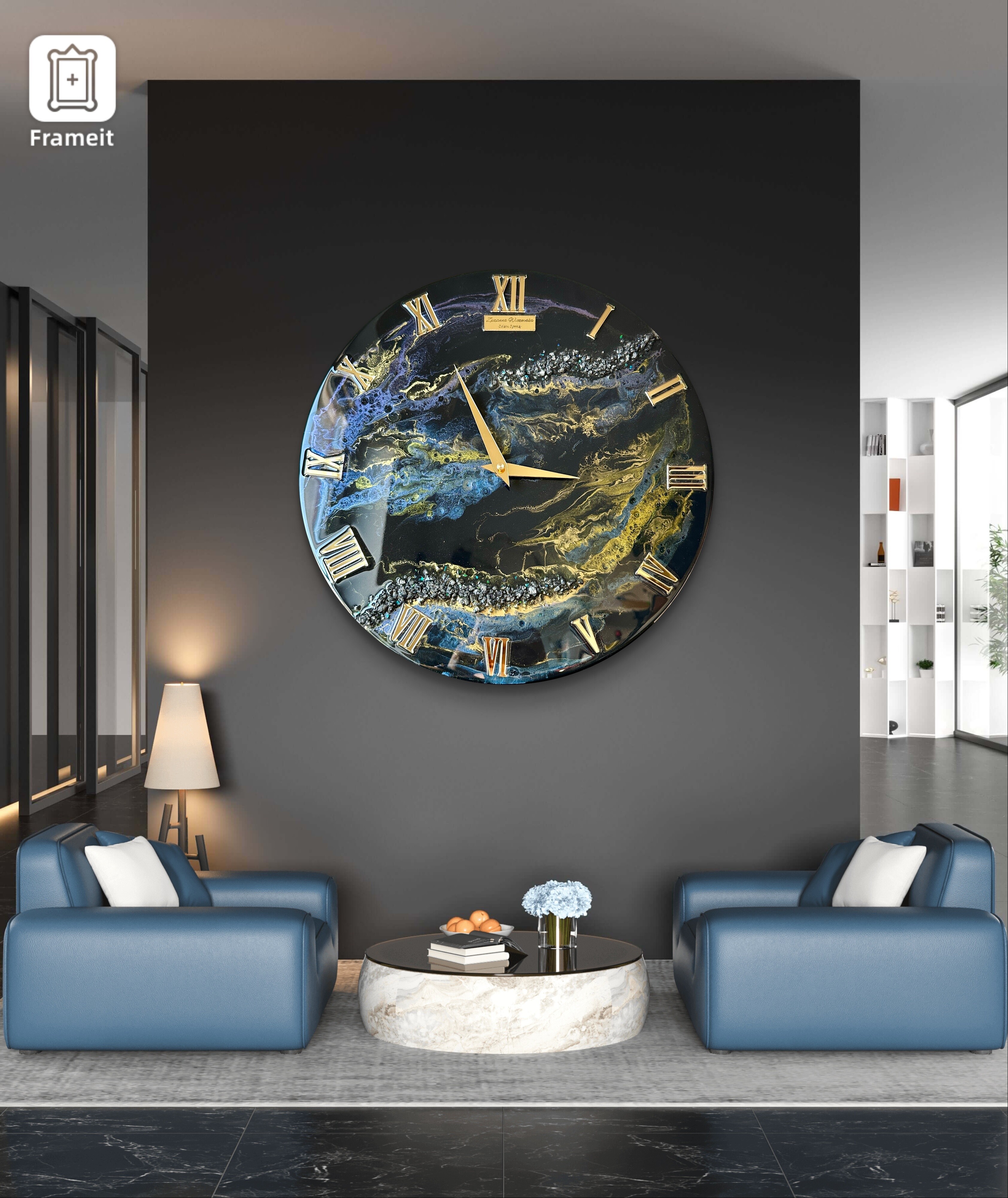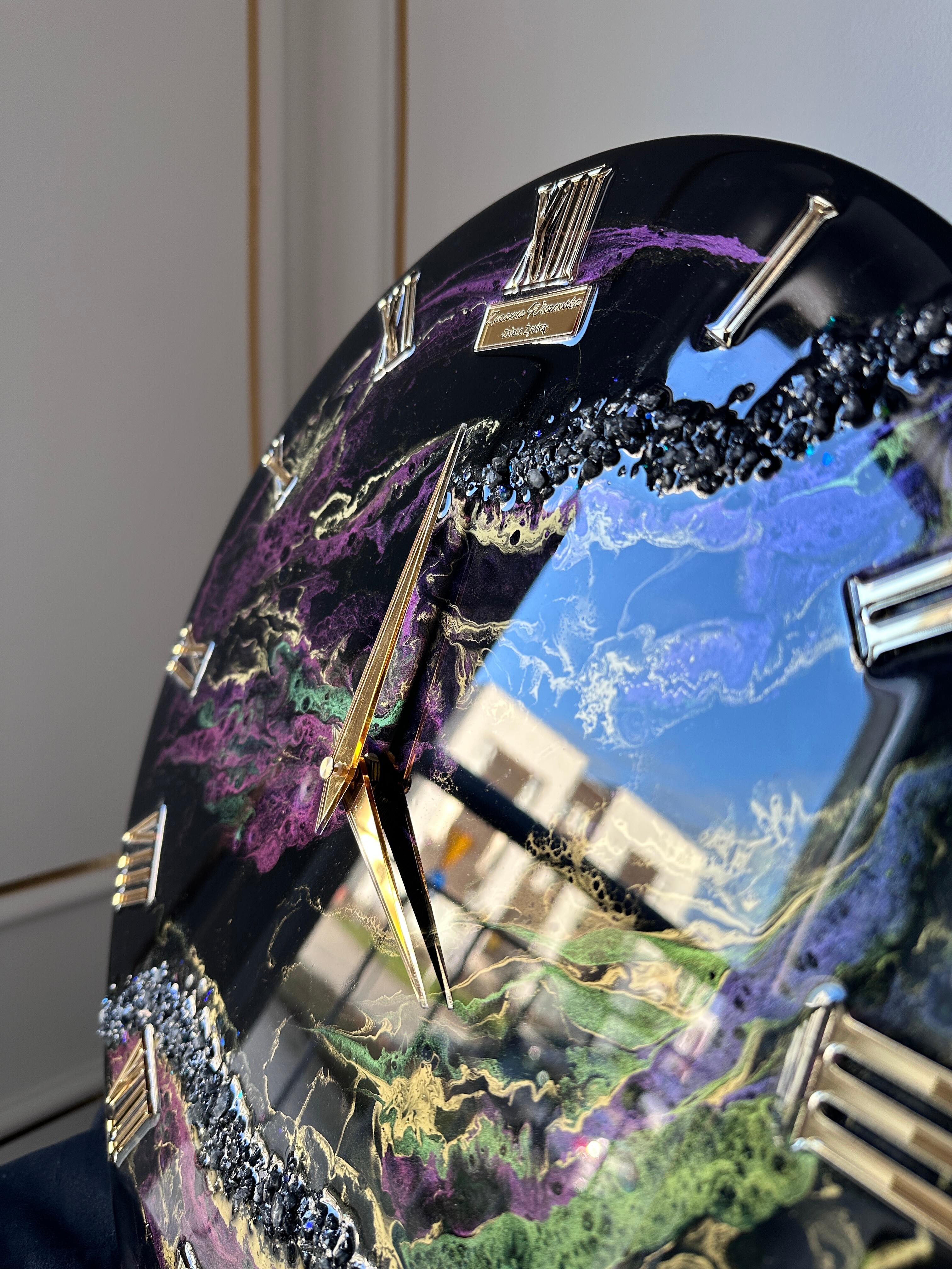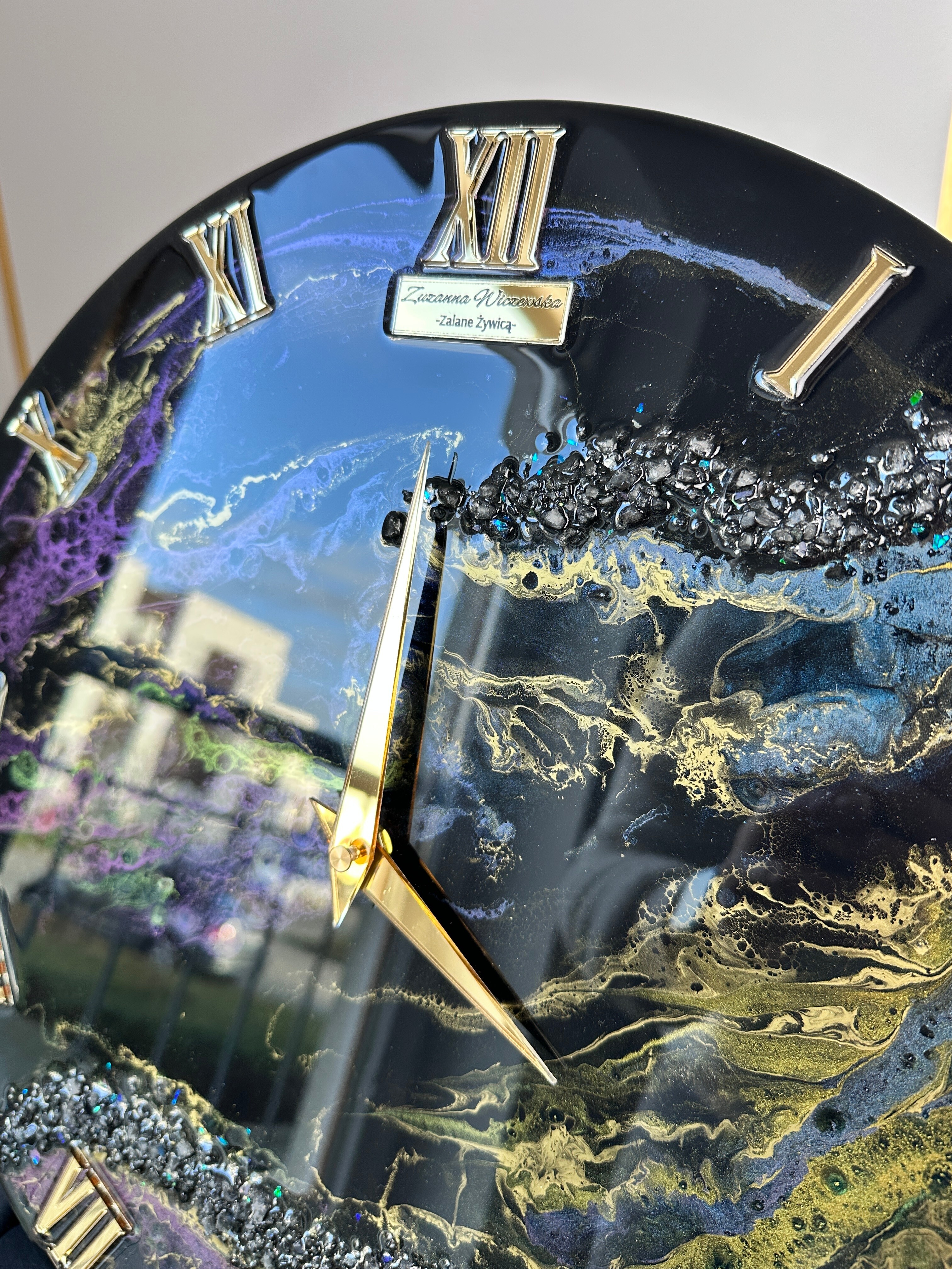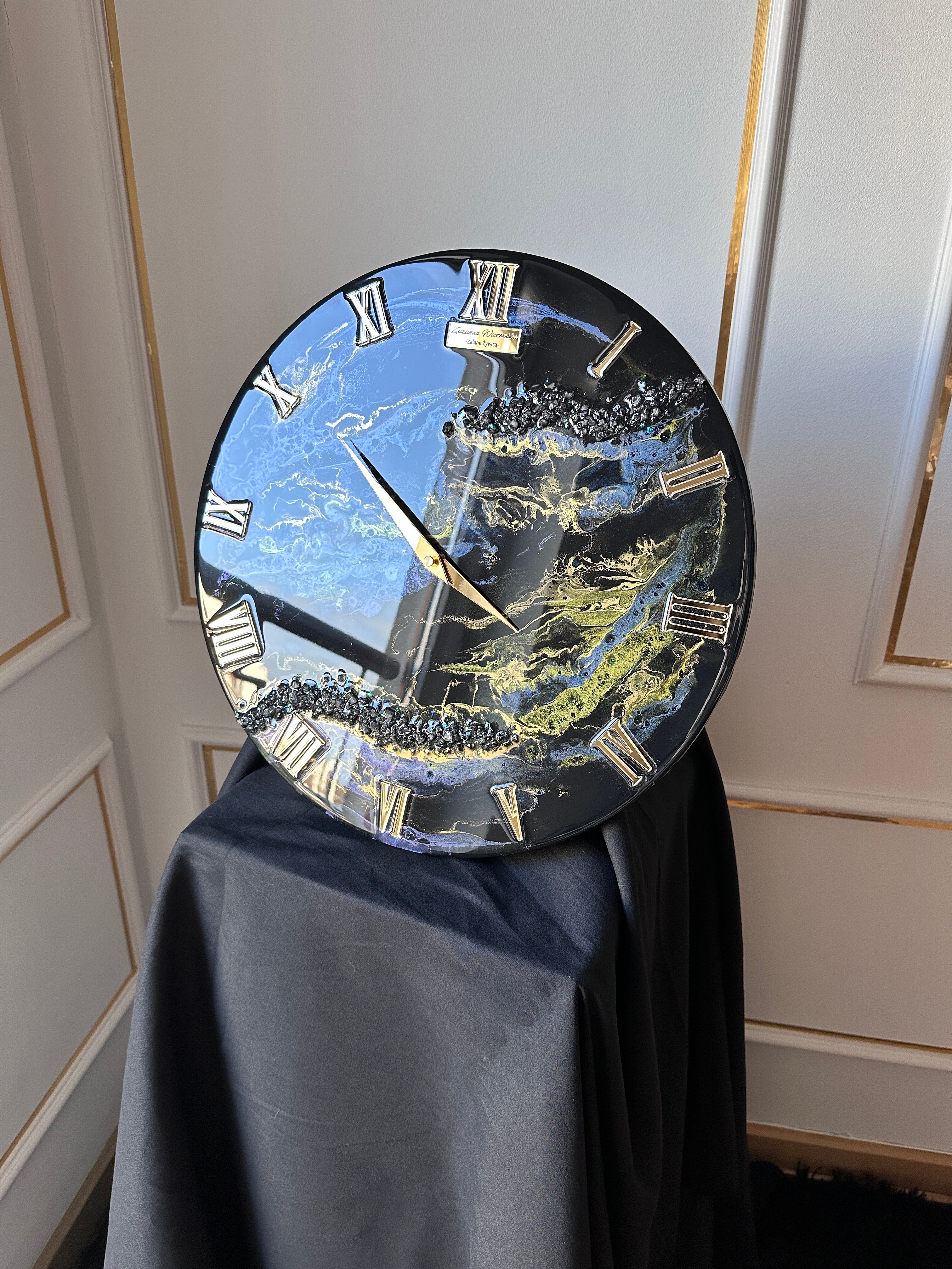 Zegar KAMELEON o średnicy 40cm wykonany z żywicy epoksydowej