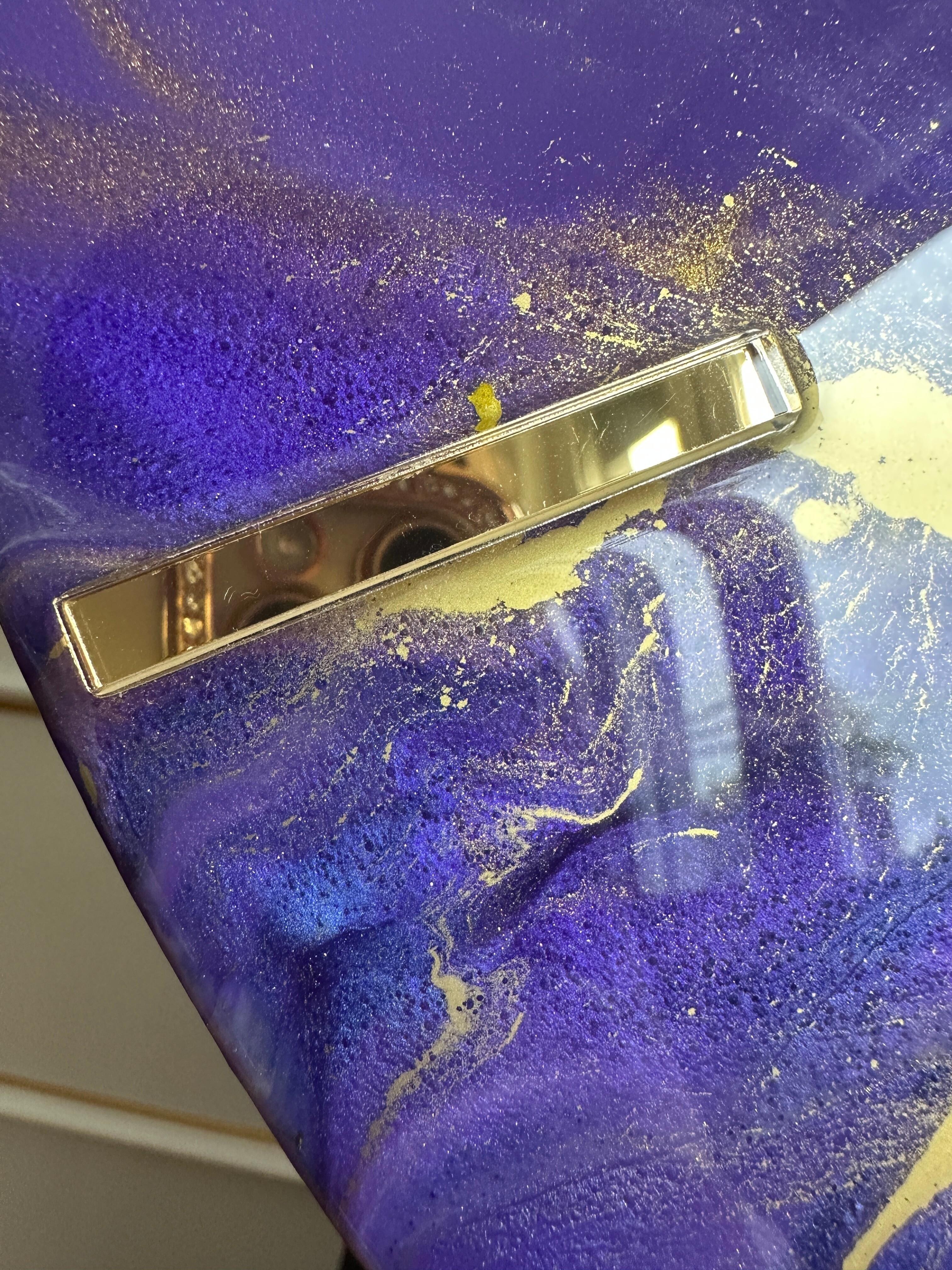 Wykonany z żywicy epoksydowej, zdobiony dodatkowo kruszonym szkłem