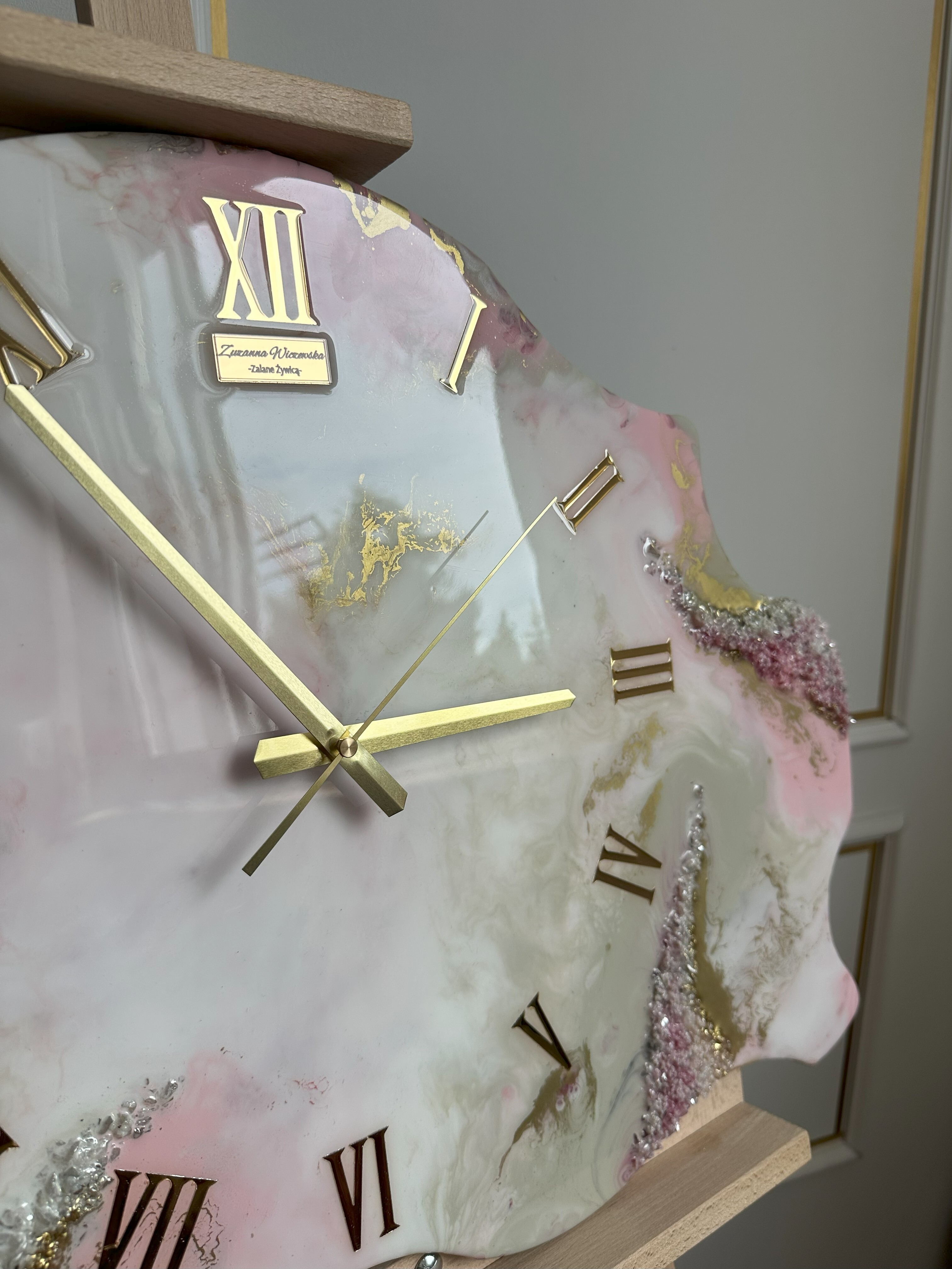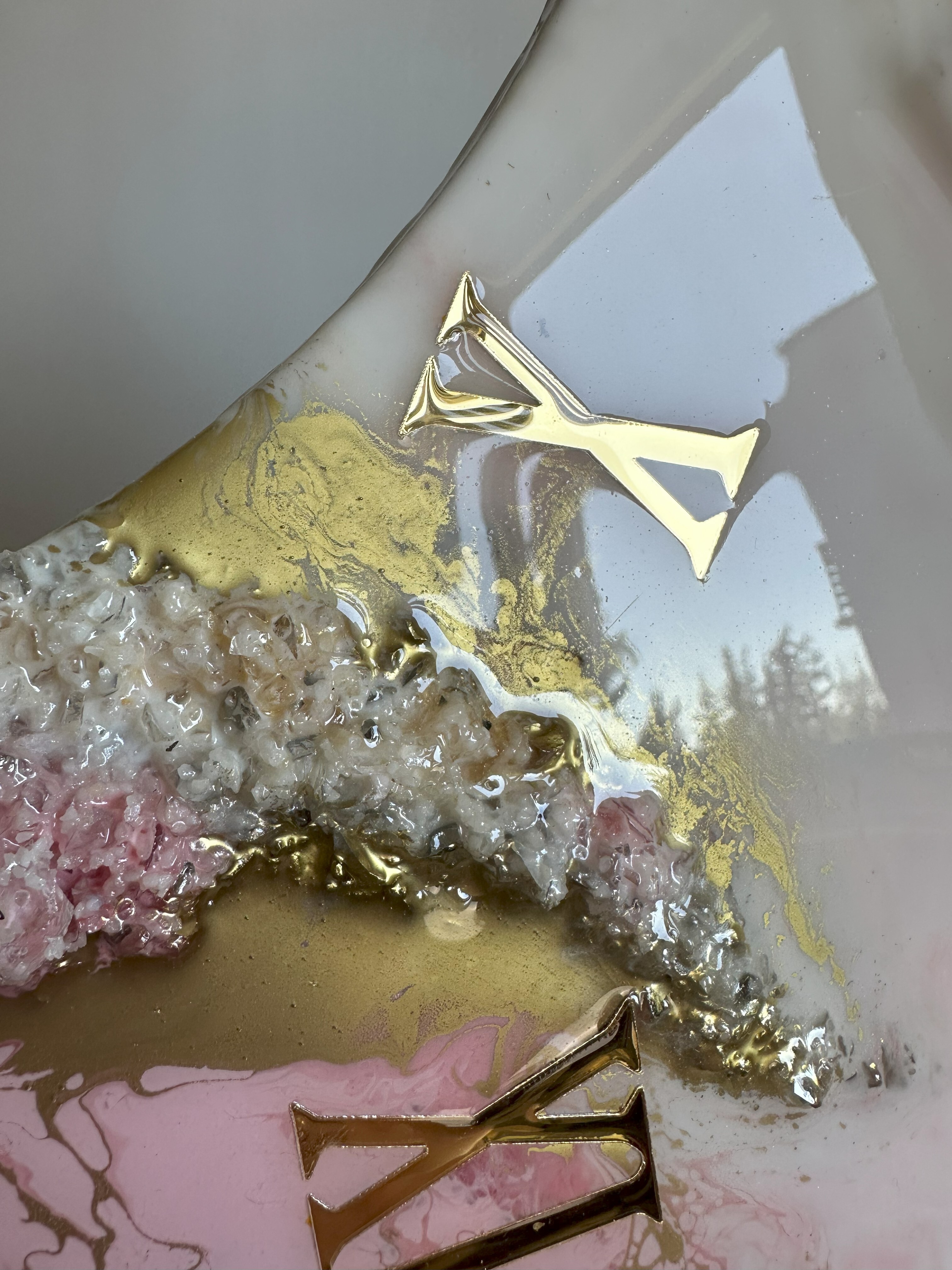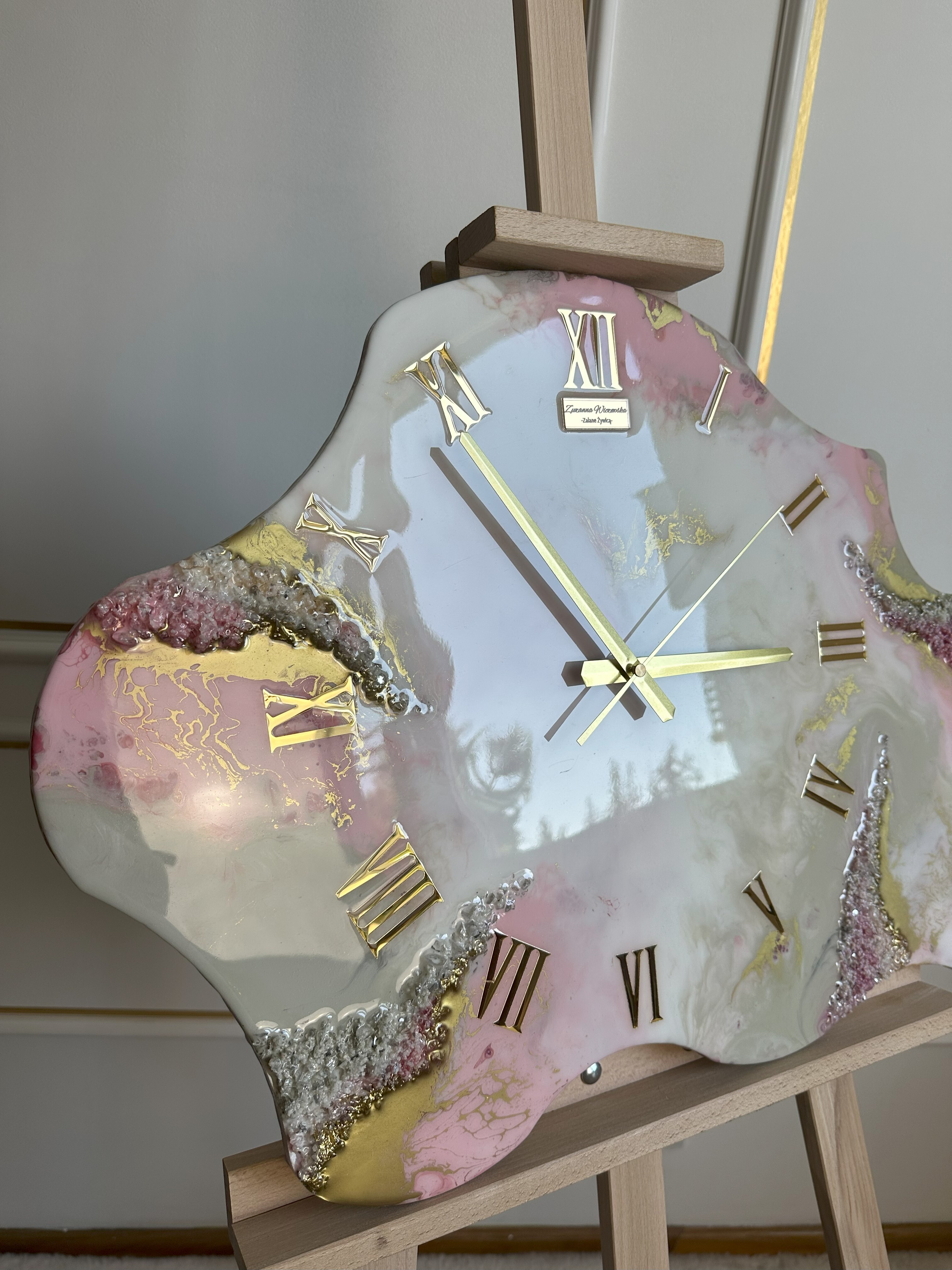 wykonany z żywicy epoksydowej z dodatkiem kamieni.